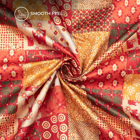 Red And Orange Floral Digital Print Pure Georgette Fabric Red And Orange Floral Digital Print Pure Georgette Fabric