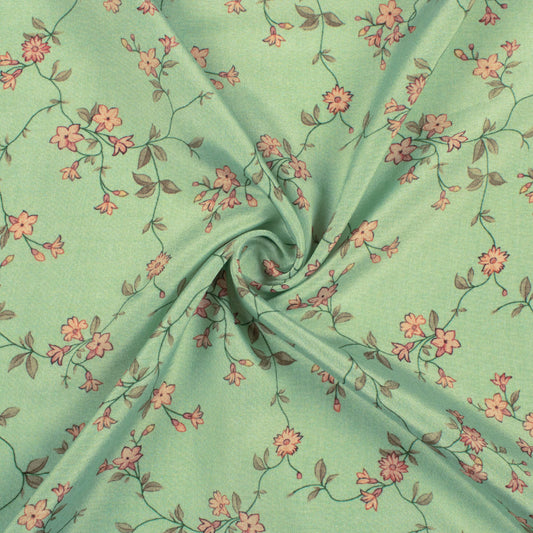 -7% offPistachio Green And Peach Floral Pattern Digital Print Crepe Silk Fabric Pistachio Green And Peach Floral Pattern Digital Print Crepe Silk Fabric