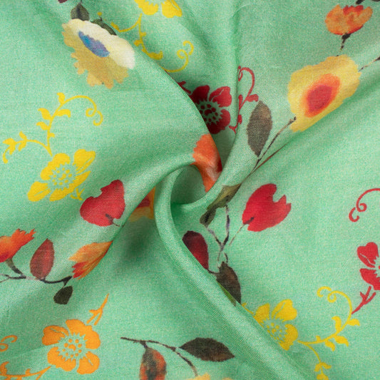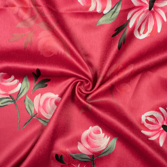 -20% offPunch Pink And Green Floral Pattern Digital Print Lush Satin Fabric Punch Pink And Green Floral Pattern Digital Print Lush Satin Fabric