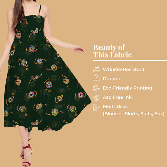 -7% offForest Green And Yellow Rakhi Pattern Digital Print Crepe Silk Fabric Forest Green And Yellow Rakhi Pattern Digital Print Crepe Silk Fabric
