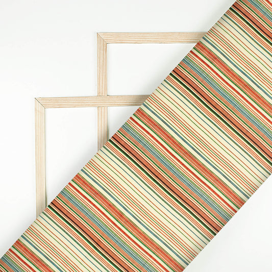 Cream And Sangria Red Stripes Pattern Digital Print Twill Fabric (Width 56 Inches) Cream And Sangria Red Stripes Pattern Digital Print Twill Fabric (Width 56 Inches)