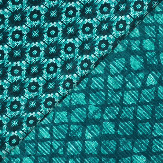 -7% offTeal Green Geometric Pattern Digital Print Crepe Silk Fabric Teal Green Geometric Pattern Digital Print Crepe Silk Fabric