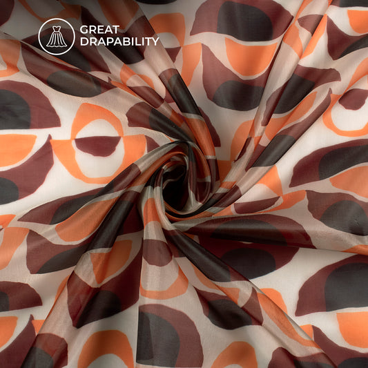Brown Geometric Digital Print Organza Satin Fabric Brown Geometric Digital Print Organza Satin Fabric