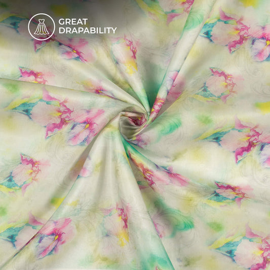Blooming Blossoms: Fashionable Floral Digital Print Crepe Silk Fabric Blooming Blossoms: Fashionable Floral Digital Print Crepe Silk Fabric