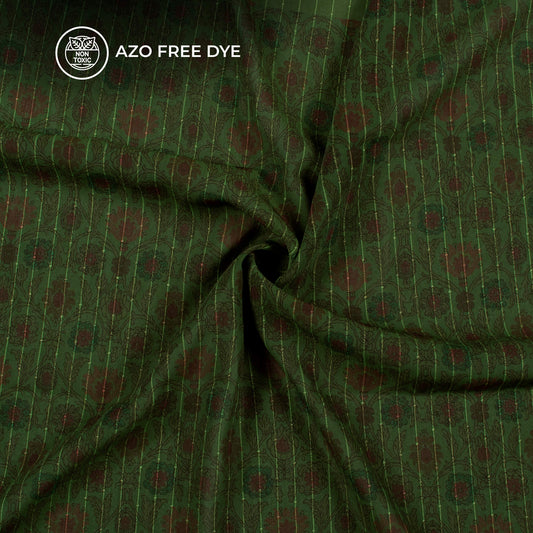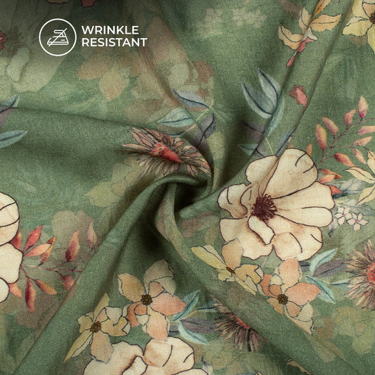 Moss Green And Peach Floral Digital Print Viscose Chanderi Fabric Moss Green And Peach Floral Digital Print Viscose Chanderi Fabric