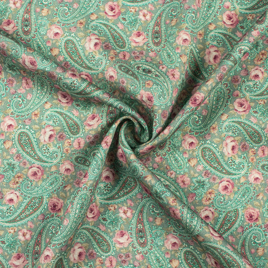 Turquoise Blue And Pink Paisley Digital Print Viscose Rayon Fabric(Width 58 Inches) Turquoise Blue And Pink Paisley Digital Print Viscose Rayon Fabric(Width 58 Inches)