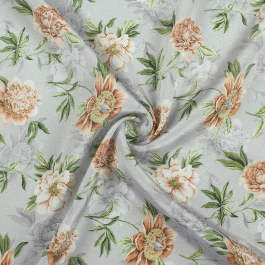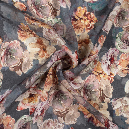 -7% offDolphin Grey And Brown Floral Pattern Digital Print Crepe Silk Fabric Dolphin Grey And Brown Floral Pattern Digital Print Crepe Silk Fabric