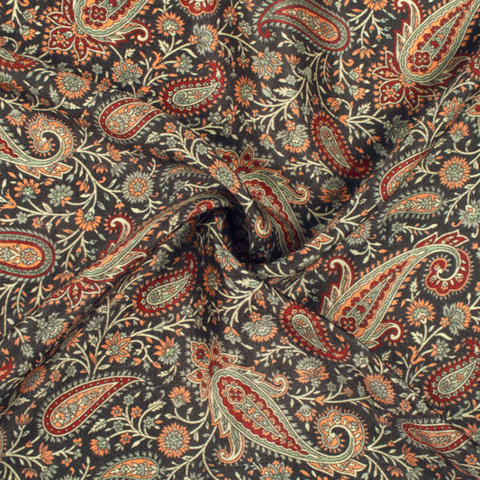 Sage Green And Black Paisely Digital Print Bemberg Raw Silk Fabric Sage Green And Black Paisely Digital Print Bemberg Raw Silk Fabric