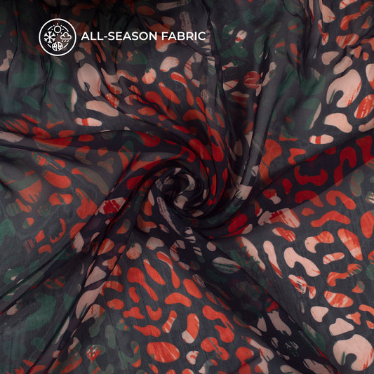 Navy Blue And Red Abstract Digital Print Pure Organza Fabric Navy Blue And Red Abstract Digital Print Pure Organza Fabric