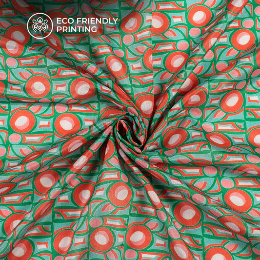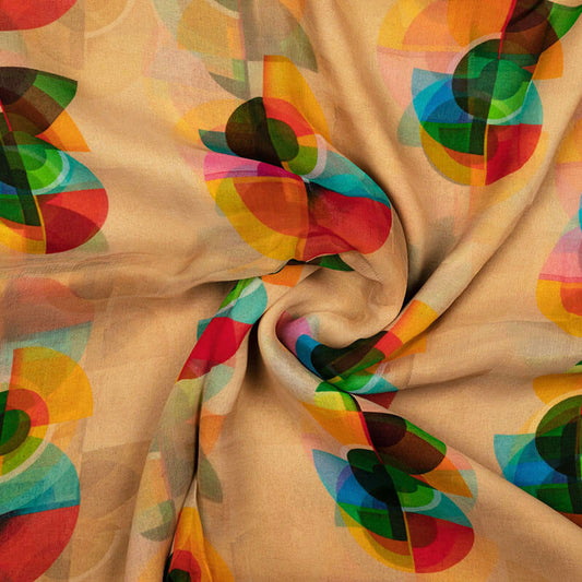 Cream And Green Geometric Pattern Digital Print Bemberg Chiffon Fabric Cream And Green Geometric Pattern Digital Print Bemberg Chiffon Fabric