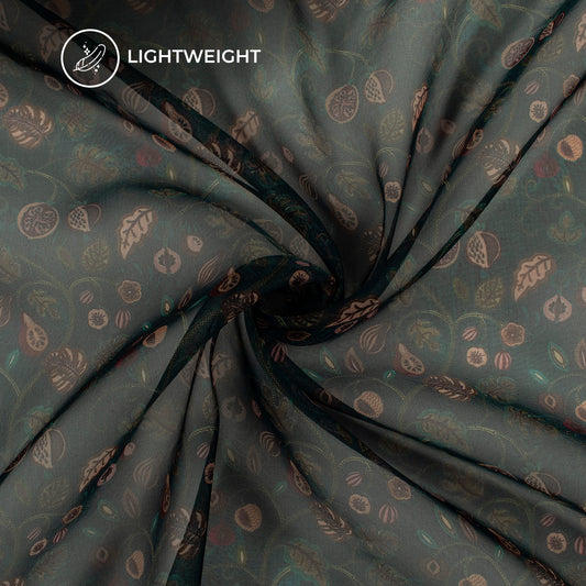 -15% offForest Green Vintage Floral Digital Print Chiffon Sparkle Fabric Forest Green Vintage Floral Digital Print Chiffon Sparkle Fabric