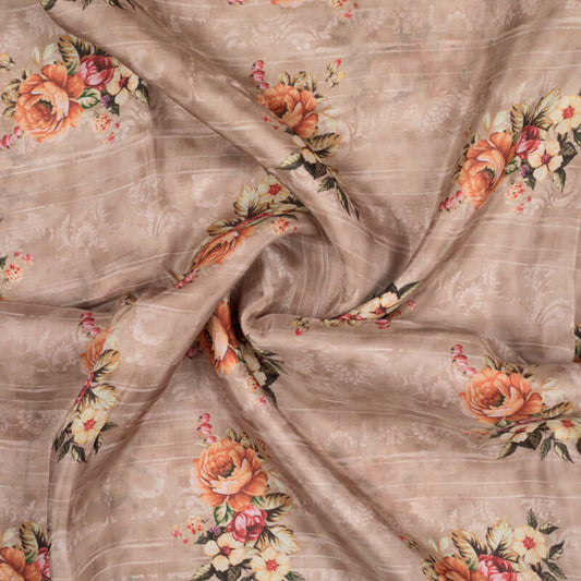 -15% offBrown And Orange Floral Pattern Digital Print Viscose Uppada Silk Fabric Brown And Orange Floral Pattern Digital Print Viscose Uppada Silk Fabric