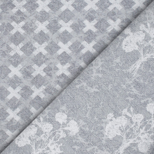 -7% offDolphin Grey And White Floral Pattern Digital Print Crepe Silk Fabric Dolphin Grey And White Floral Pattern Digital Print Crepe Silk Fabric