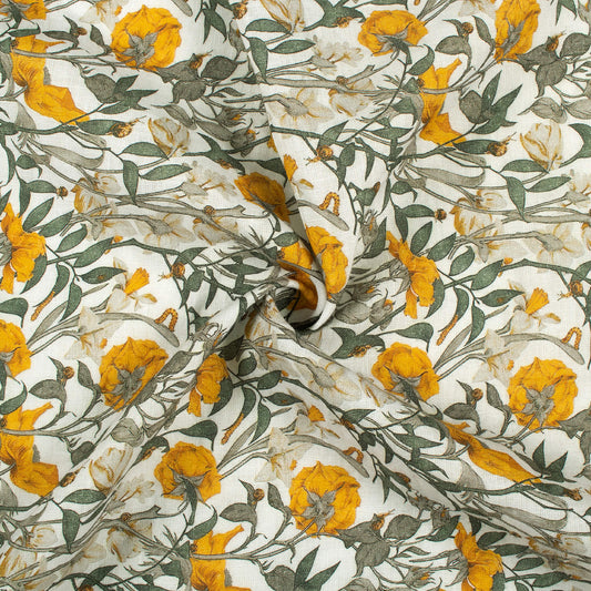 Charming Floral Digital Print Premium Swiss Linen Fabric Charming Floral Digital Print Premium Swiss Linen Fabric