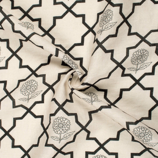 Off White And Black Checks Pattern Digital Print Premium Swiss Linen Fabric Off White And Black Checks Pattern Digital Print Premium Swiss Linen Fabric
