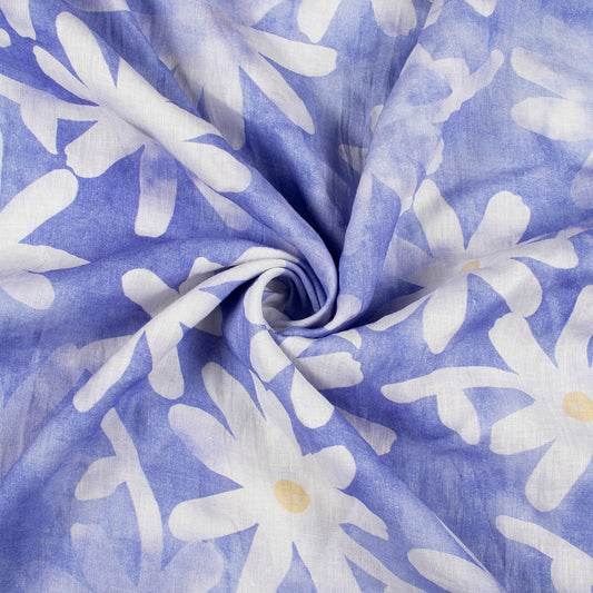 Periwinkle Purple And White Floral Digital Print Swiss Linen Fabric Periwinkle Purple And White Floral Digital Print Swiss Linen Fabric