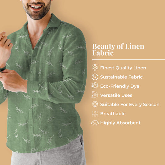 Laurel Green And White Leaf Pattern Digital Print Premium Swiss Linen Fabric Laurel Green And White Leaf Pattern Digital Print Premium Swiss Linen Fabric