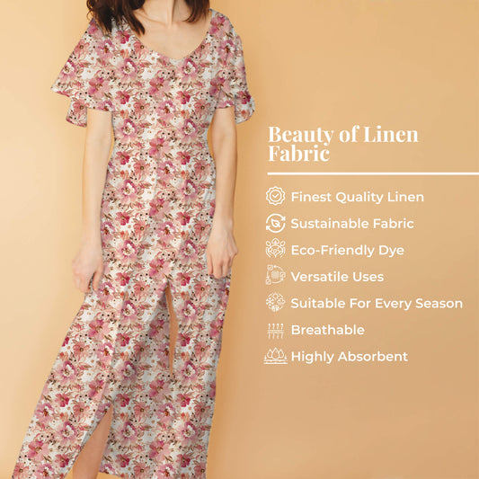 Pink Vintage Floral Digital Print Premium Swiss Linen Fabric Pink Vintage Floral Digital Print Premium Swiss Linen Fabric