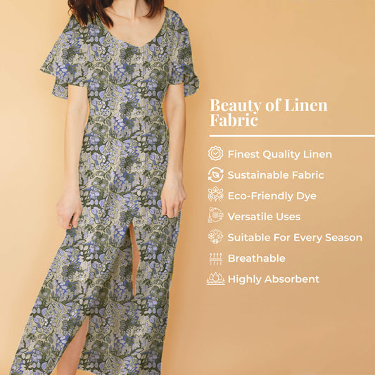 Exclusive Vintage Floral Digital Print Premium Swiss Linen Fabric Exclusive Vintage Floral Digital Print Premium Swiss Linen Fabric