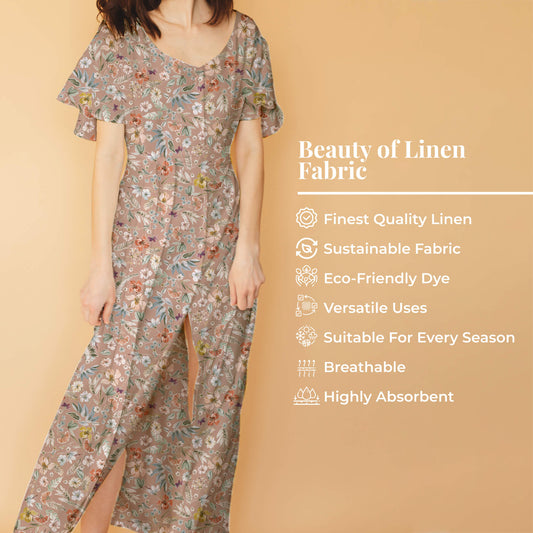Dusty Peach And Brown Floral Pattern Digital Print Premium Swiss Linen Fabric Dusty Peach And Brown Floral Pattern Digital Print Premium Swiss Linen Fabric
