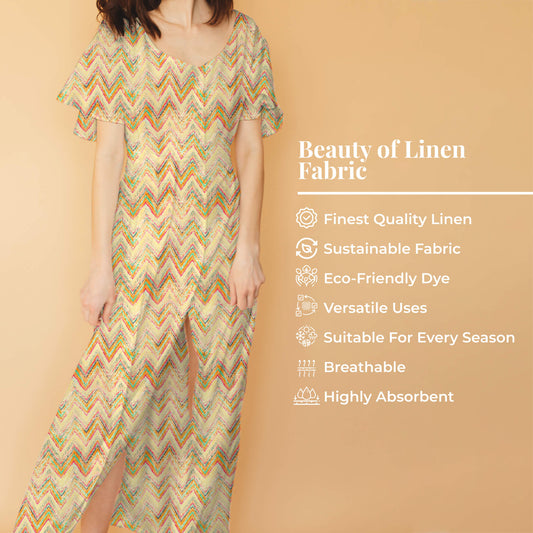 Pale Yellow And Orange Chevron Pattern Digital Print Premium Swiss Linen Fabric Pale Yellow And Orange Chevron Pattern Digital Print Premium Swiss Linen Fabric