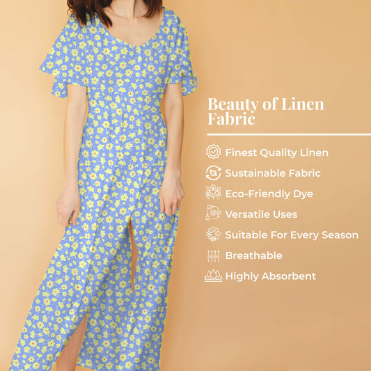 Carolina Blue And Corn Yellow Floral Pattern Digital Print Premium Swiss Linen Fabric Carolina Blue And Corn Yellow Floral Pattern Digital Print Premium Swiss Linen Fabric