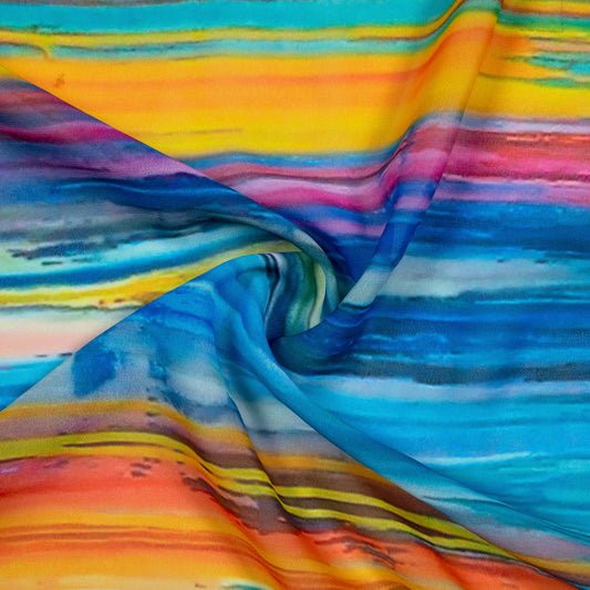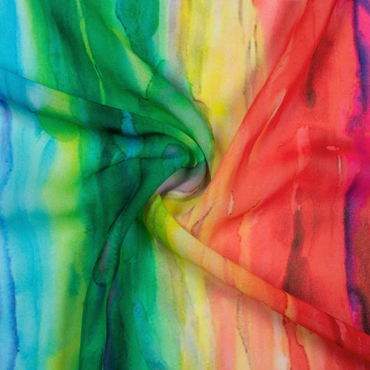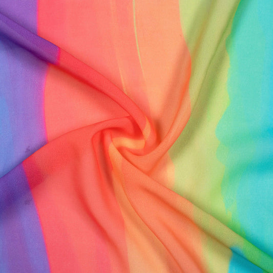 Dreamy Rainbow Stripes: High-Quality Digital Print Georgette Fabric Dreamy Rainbow Stripes: High-Quality Digital Print Georgette Fabric