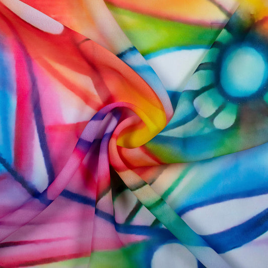 -10% offMulti-Color Rainbow Pattern Digital Print Georgette Fabric Multi-Color Rainbow Pattern Digital Print Georgette Fabric