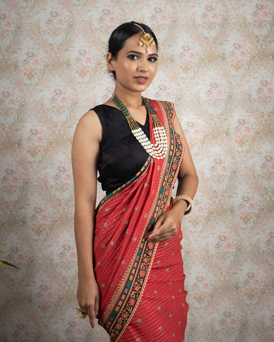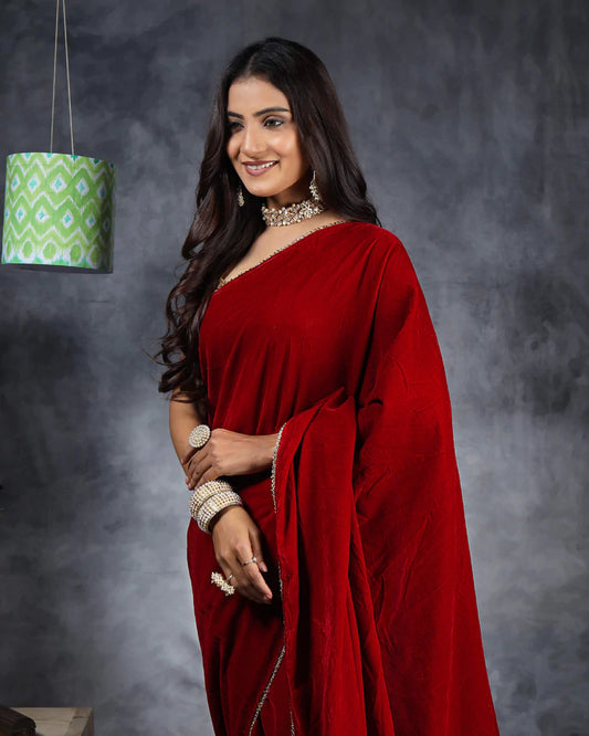 -20% offIndian Red Plain Velvet Saree With Zari Stone Work Lace Border Indian Red Plain Velvet Saree With Zari Stone Work Lace Border