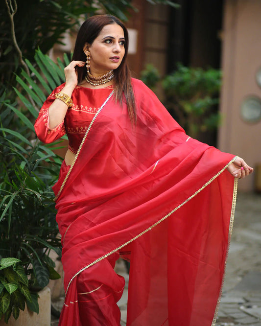 -20% offChilli Red Plain Japan Satin Saree With Lace Border Chilli Red Plain Japan Satin Saree With Lace Border
