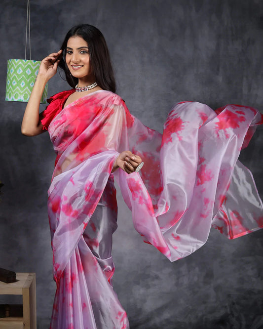-20% offVermilion Red And Pearl Grey Floral Pattern Digital Print Japan Satin Saree Vermilion Red And Pearl Grey Floral Pattern Digital Print Japan Satin Saree