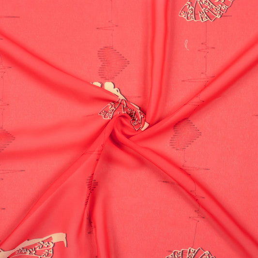 -10% offRed And Beige Quirky Pattern Digital Print Georgette Fabric Red And Beige Quirky Pattern Digital Print Georgette Fabric