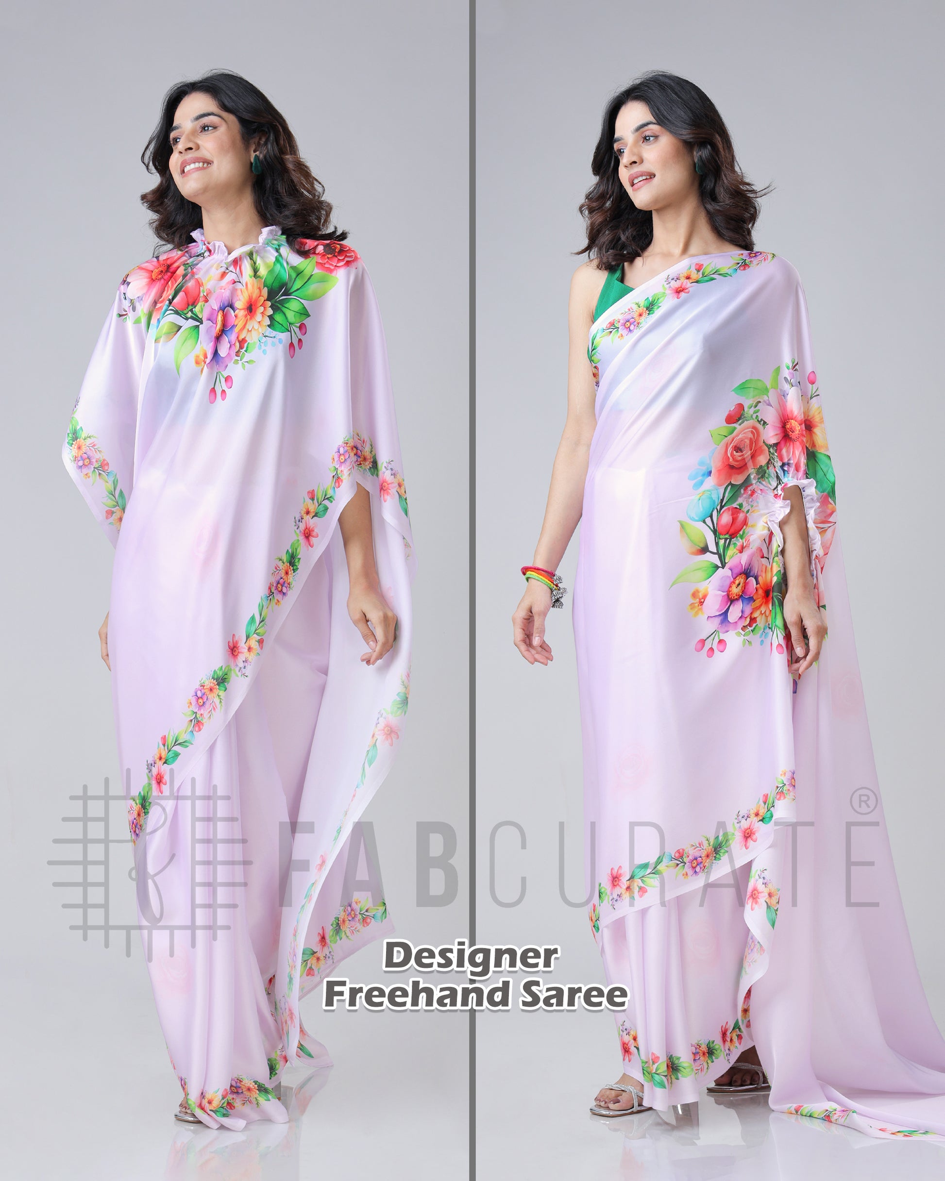 Yes, you read that right! This saree features a cleverly designed hole in the pallu. This innovative feature allows you to drape and secure your pallu without the need for constant adjustments, freeing your hands for other tasks. Enjoy the grace of a perfectly draped saree, completely handsfree! Experience the future of saree draping with the Handsfree Mandala Saree. It's not just a garment; it's a game-changer.