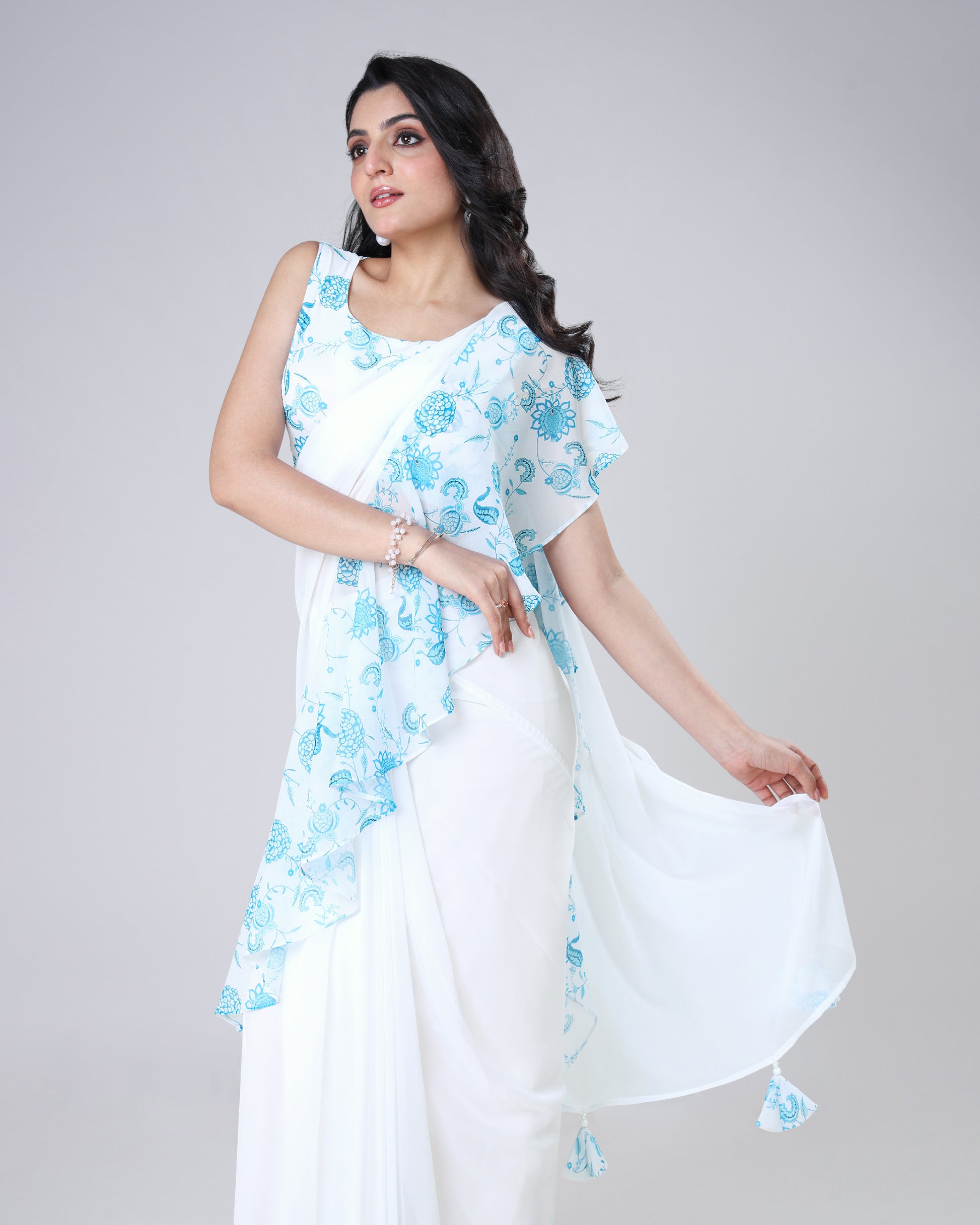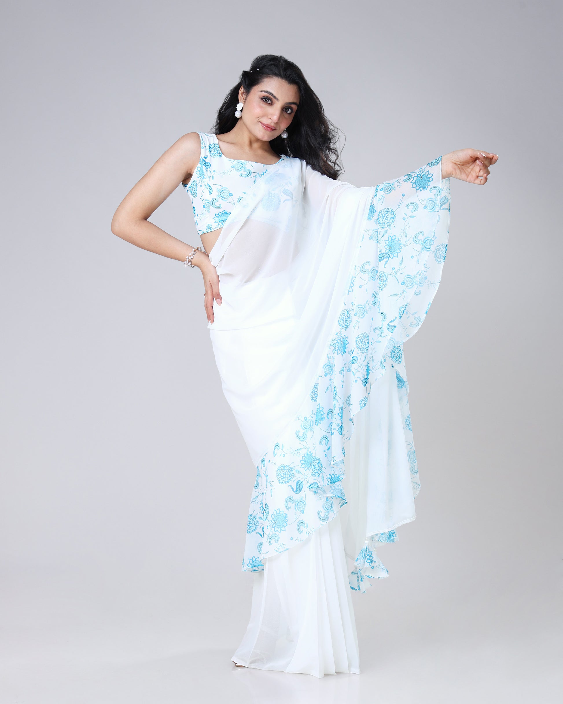 Elevate your ethnic wardrobe with our Ruffle Georgette Saree, available in both plain and printed styles for every mood and occasion. Crafted in lightweight georgette, it drapes effortlessly to give you a trendy yet graceful look. Known as our #1 seller saree, it beautifully blends modern design with timeless Indian tradition. Perfect for parties, weddings, or festive celebrations, this saree is a true statement of elegance and style.