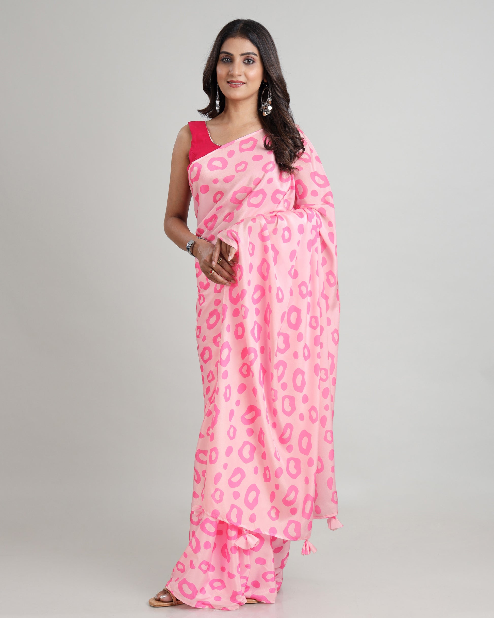 Crepe silk sarees: Renowned for their luxurious texture and elegant drape, epitomize sophistication and grace. Versatile and enduring, crepe silk sarees effortlessly transition from day to night, making them a wardrobe staple for every woman. Whether paired with traditional jewelry for a classic look or accessorized with modern accents for a contemporary twist, these sarees never fail to captivate attention and are admired by all.