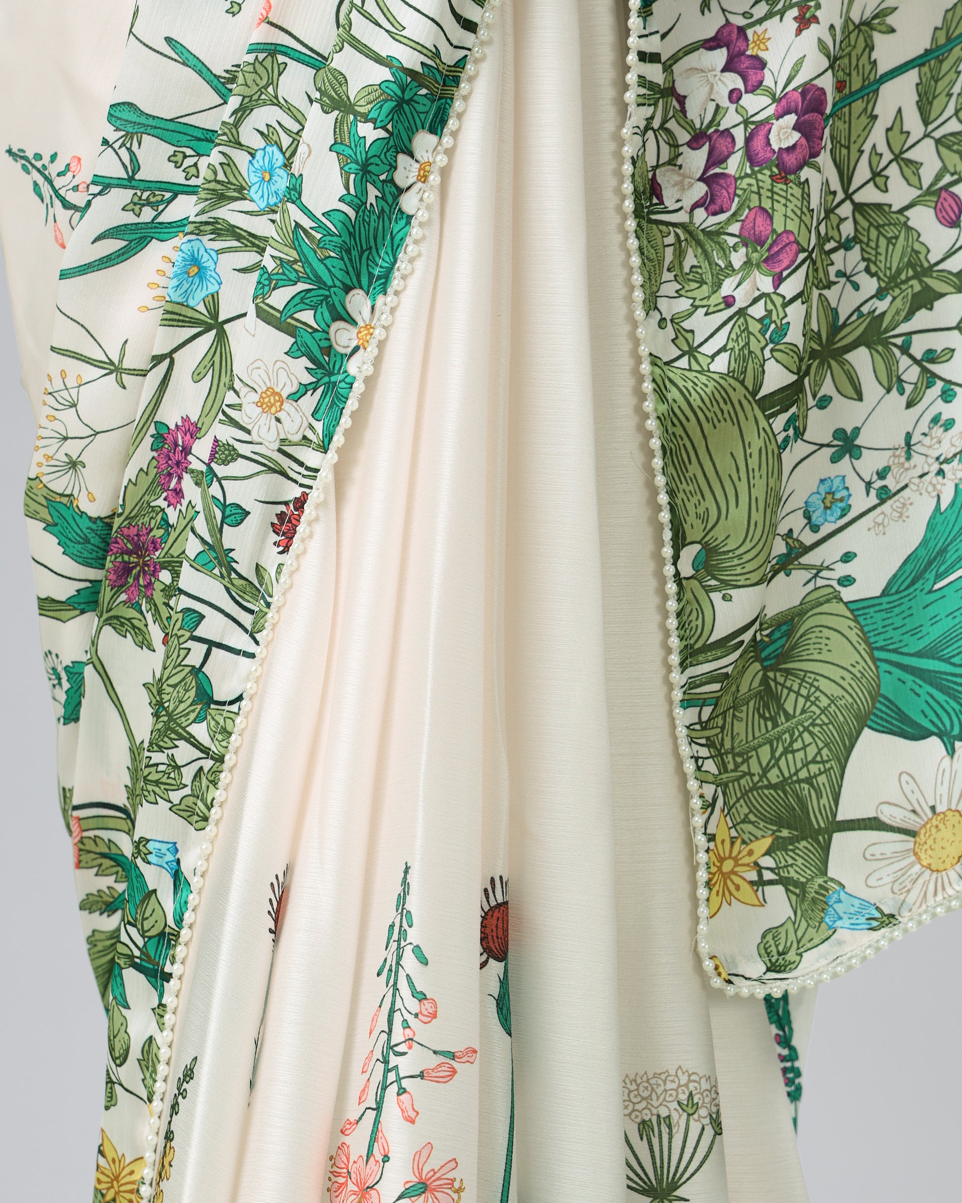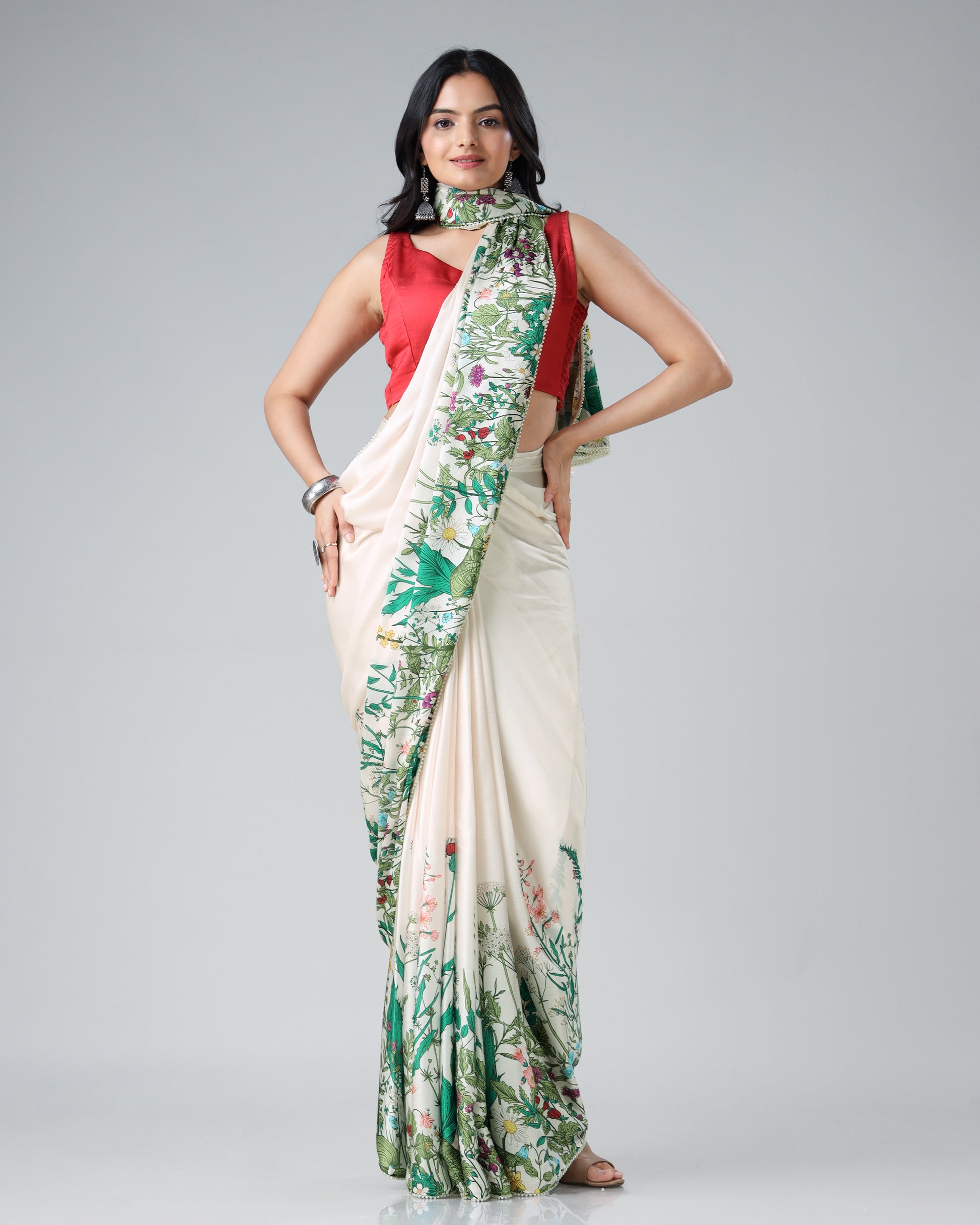 Introducing the perfect saree for the modern woman on the go - our stunning pre-draped chiffon satin sarees! Crafted from luxurious fabric that drapes beautifully, these sarees offer the timeless elegance of a saree with the ultimate convenience of effortless dressing. Don't let saree draping hold you back! Our pre-draped sarees are the perfect solution for busy women who want to embrace the saree's beauty without the hassle.