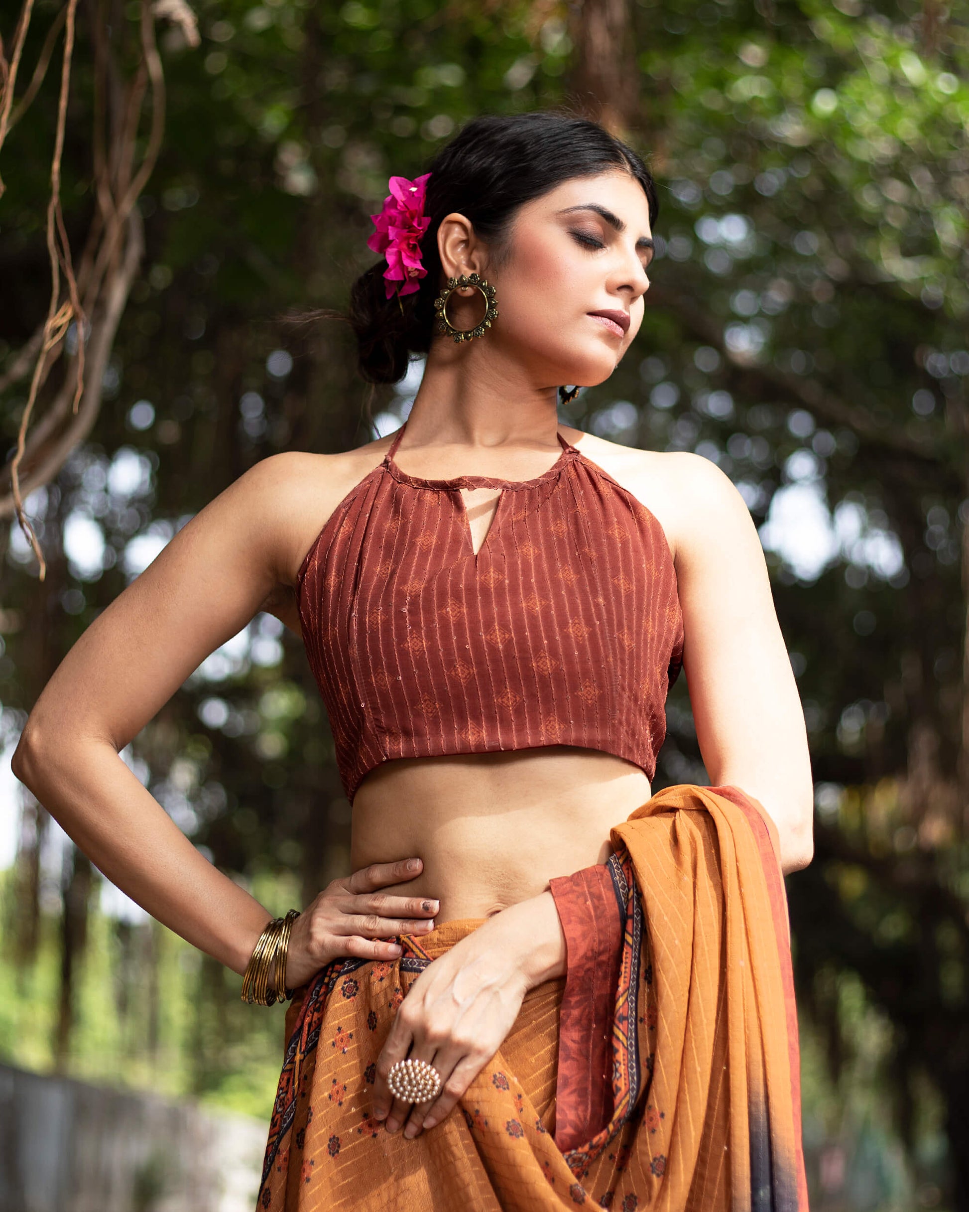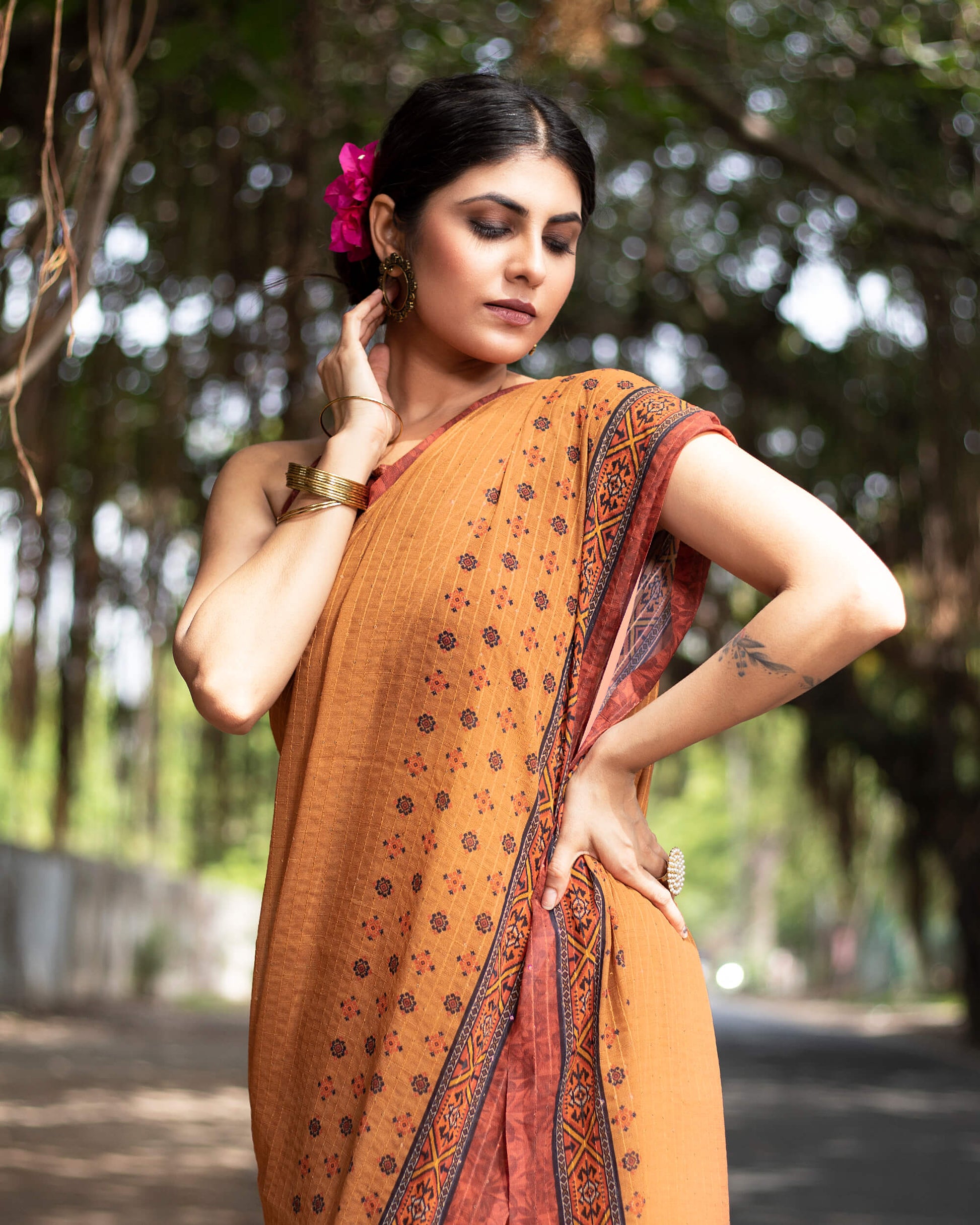 Fabcurate's saree collection will upgrade your dressing style. Highly rated fabrics such as Liquid Organza, Japan satin, Chinon Chiffon, Uppada Silk, Georgette, have been drawn into gorgeous sarees. Wear a class and be a trend maker, with these new sets of sarees. These fabrics are durable, have good drapability, soft when touching such as silk.