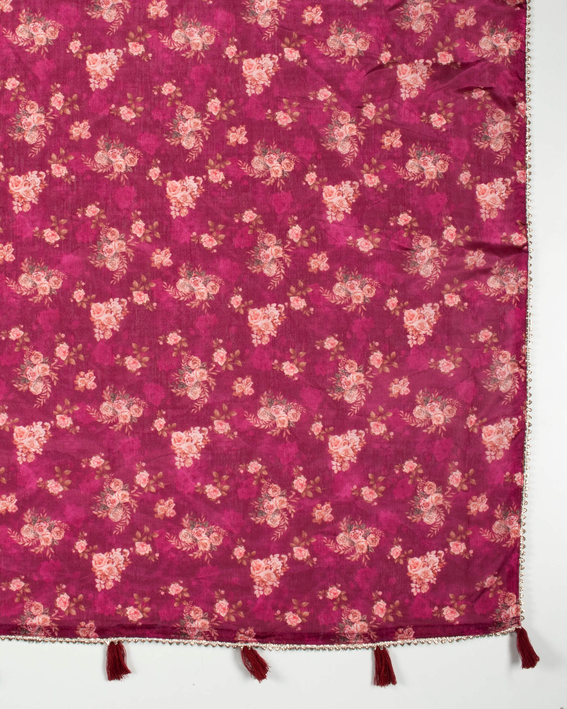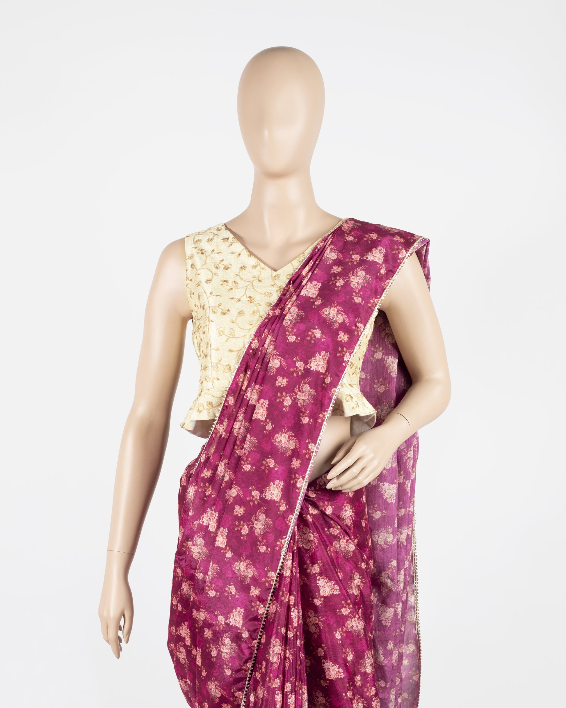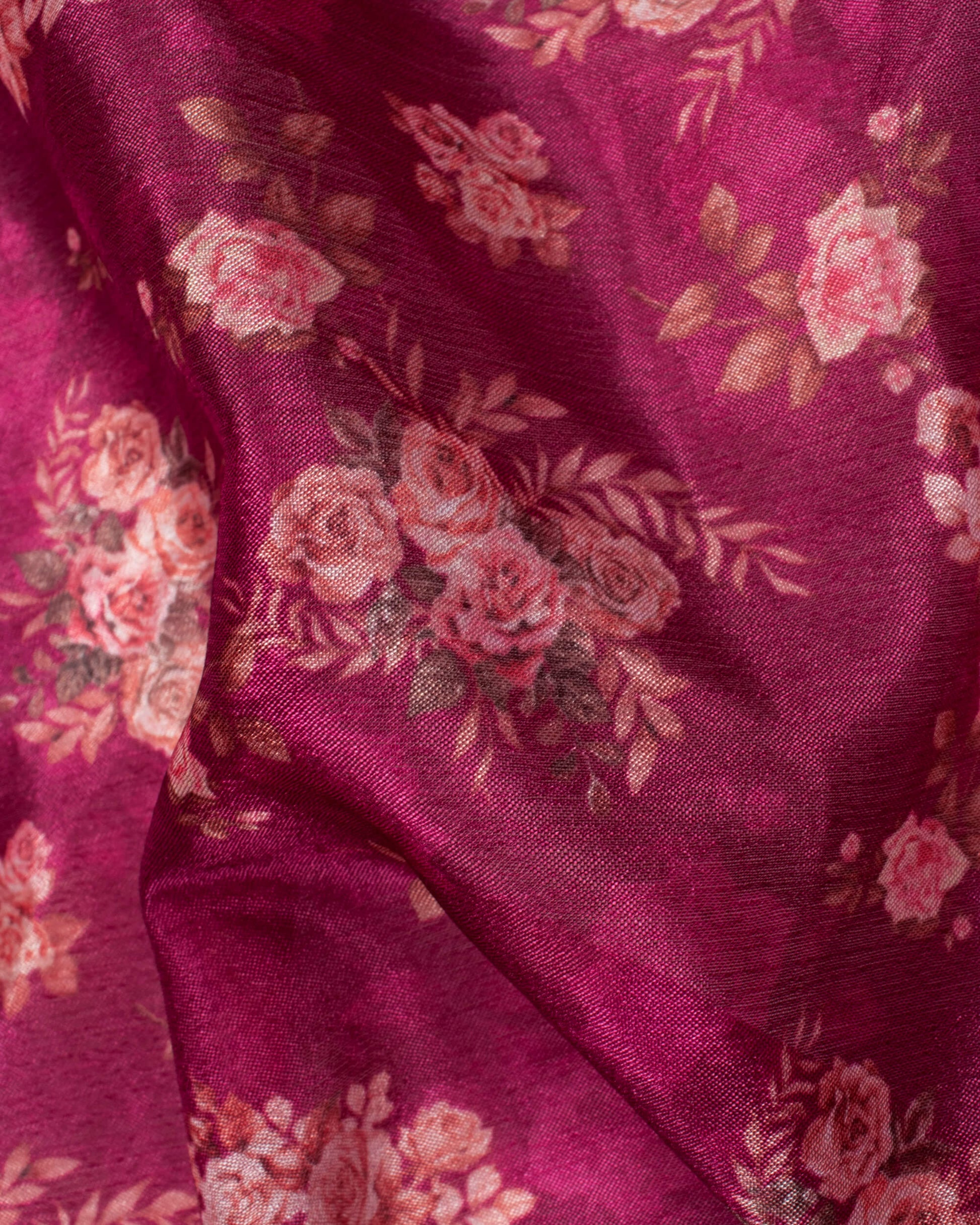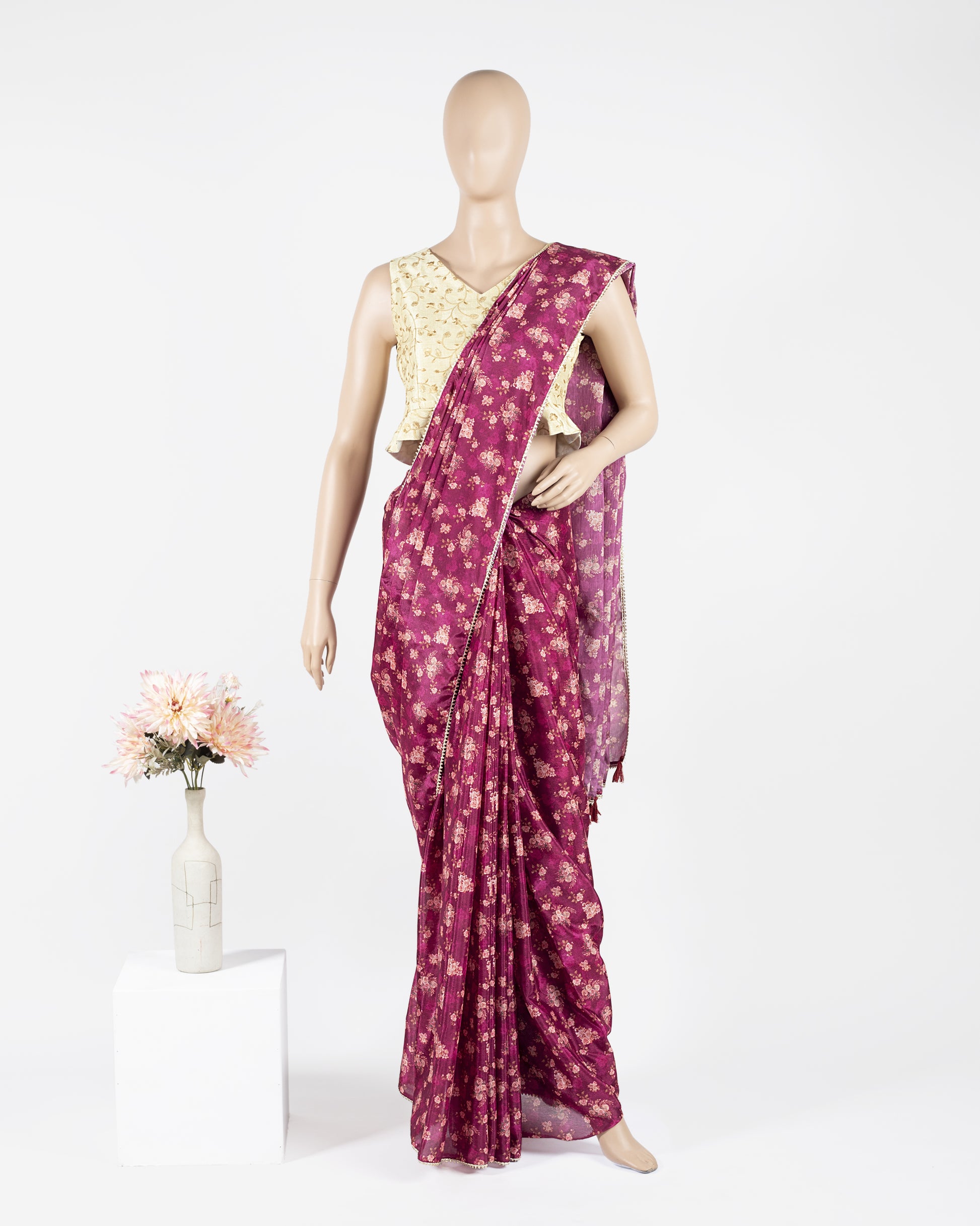 Exclusive Mulberry Purple And Rose Pink Floral Poly Chinnon Saree