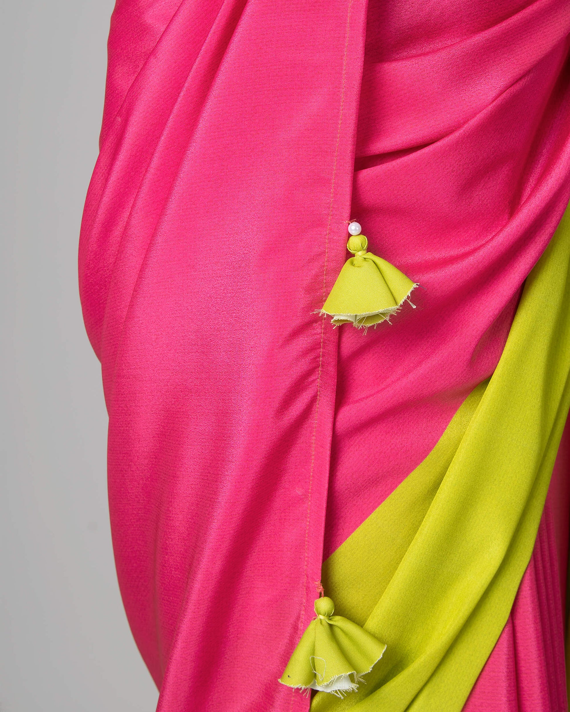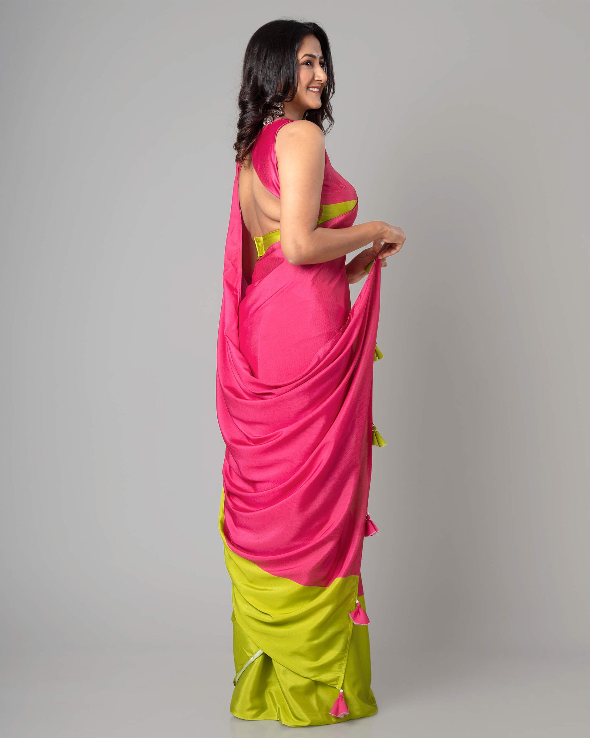 Up your style game with this exclusive designer saree! Made of gorgeous silk and featuring a stunning ombre design, you'll be ready to make a statement everywhere you go. Get ready to wow the crowd in this Bollywood-approved look!