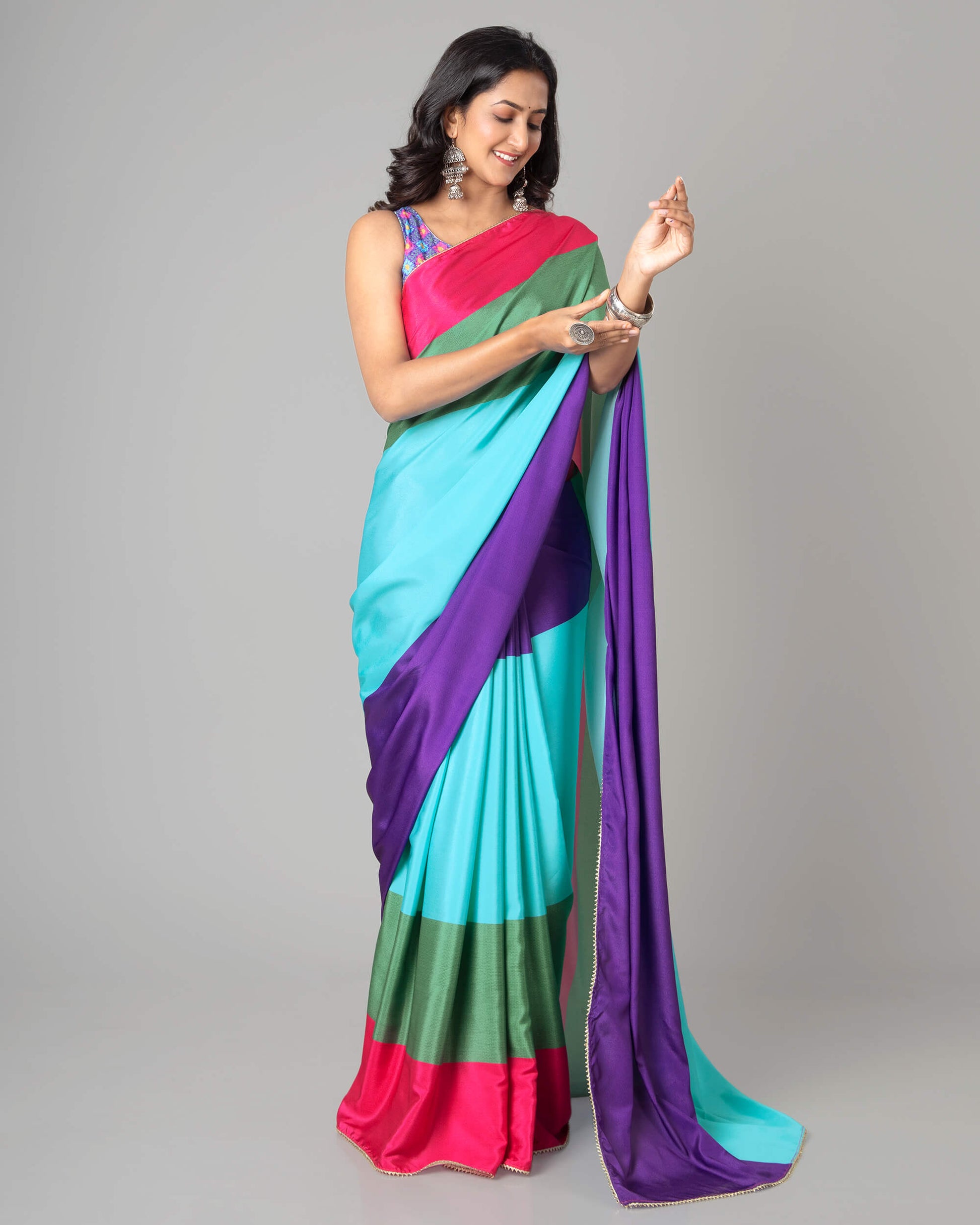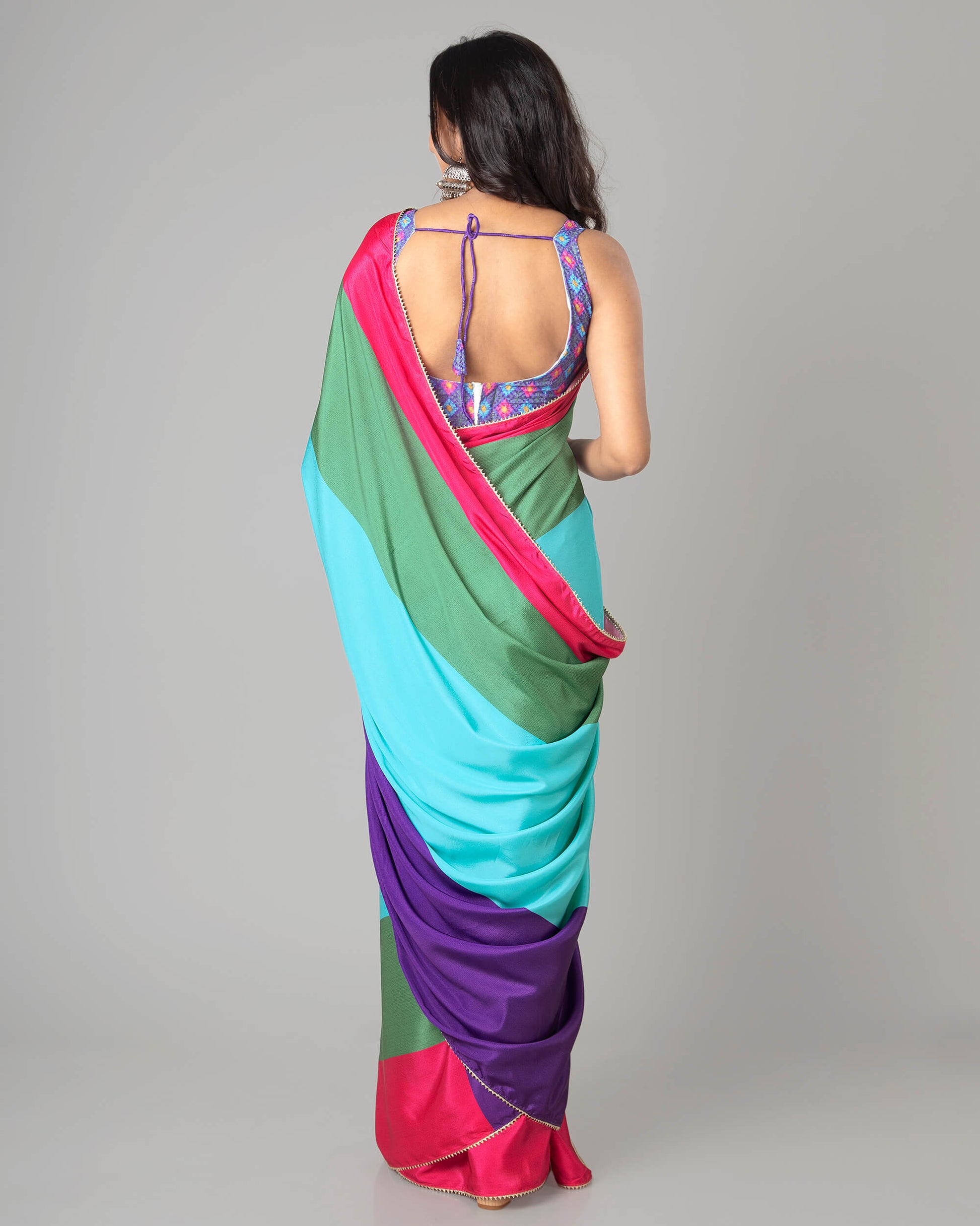 Up your style game with this exclusive designer saree! Made of gorgeous silk and featuring a stunning ombre design, you'll be ready to make a statement everywhere you go. Get ready to wow the crowd in this Bollywood-approved look!