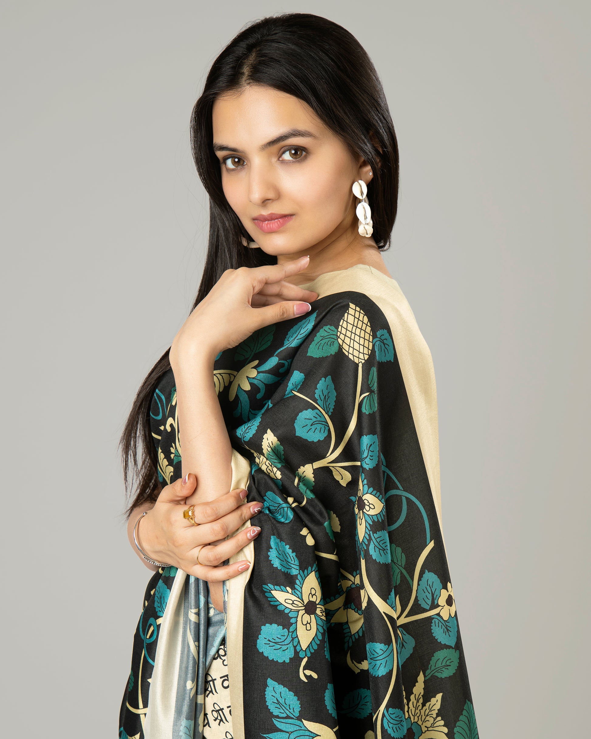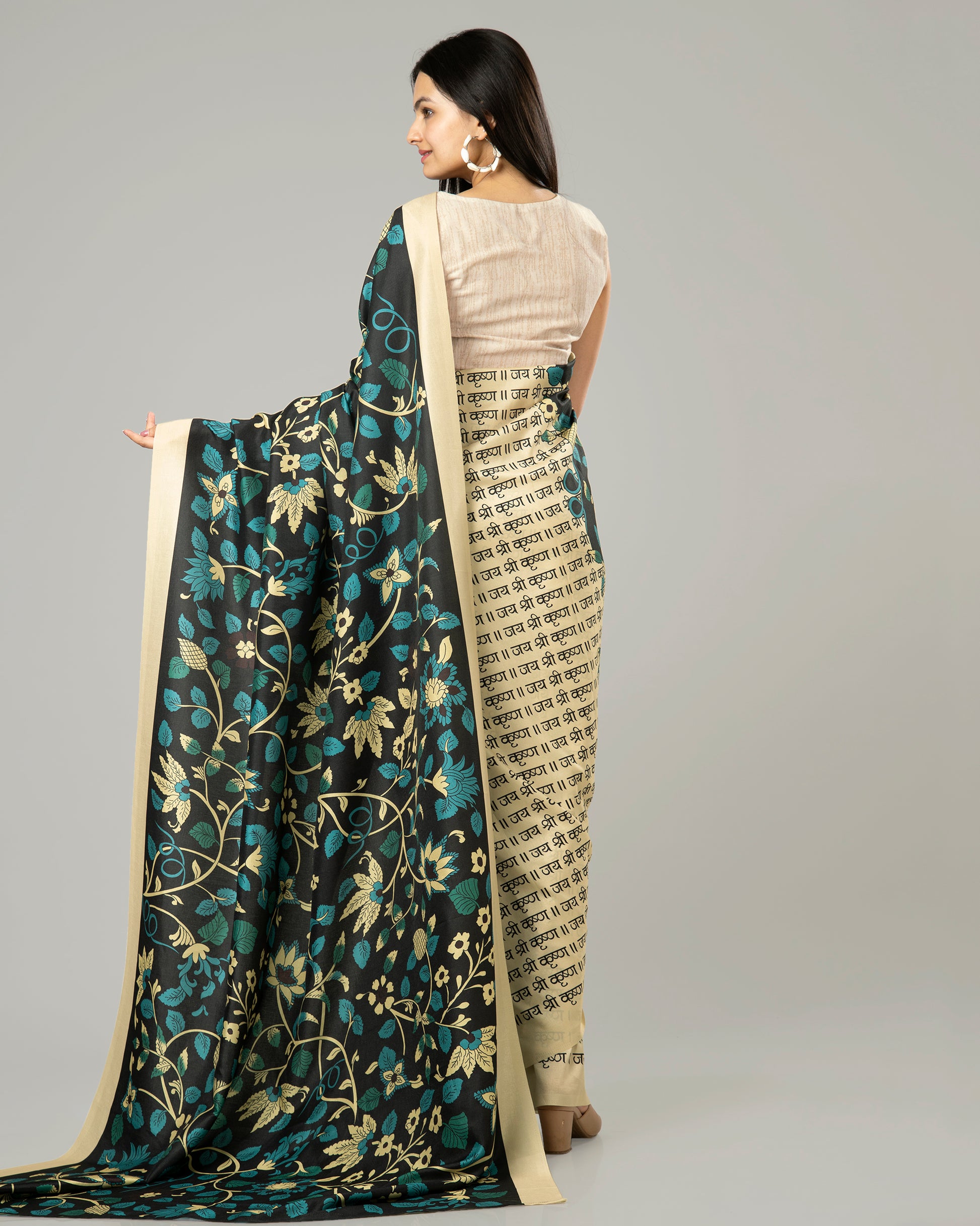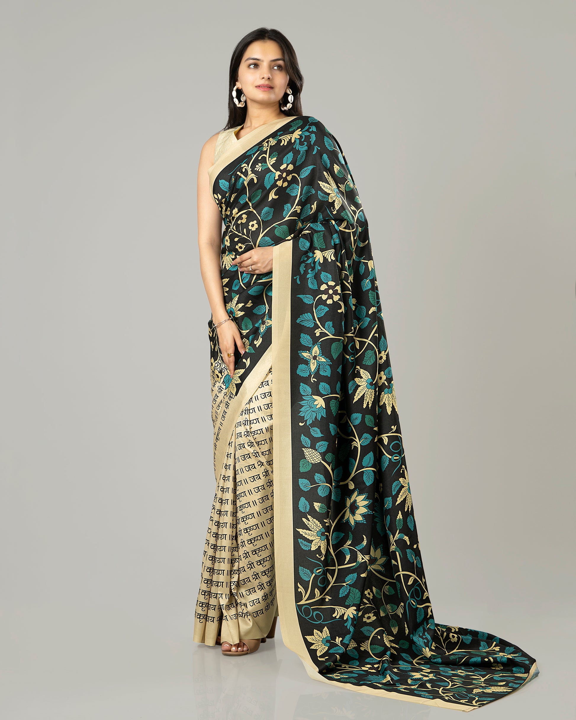 Exclusive Quirky And Floral Colour Block Flat Silk Saree