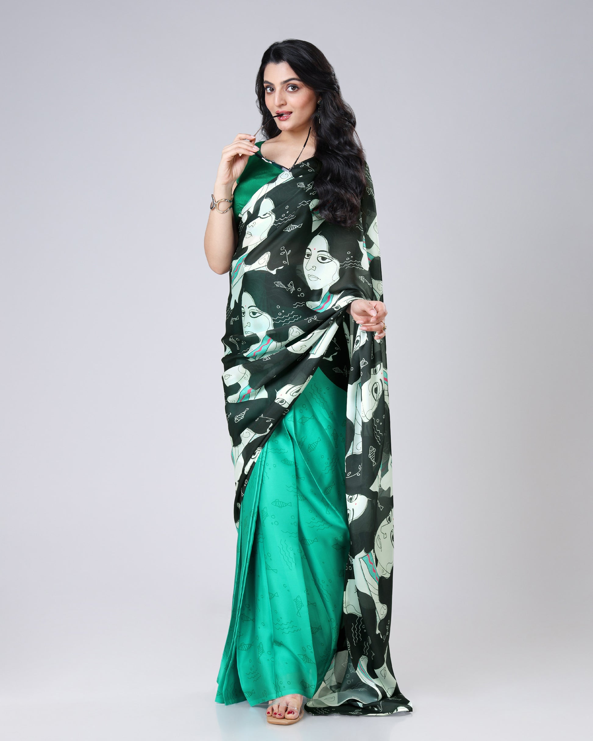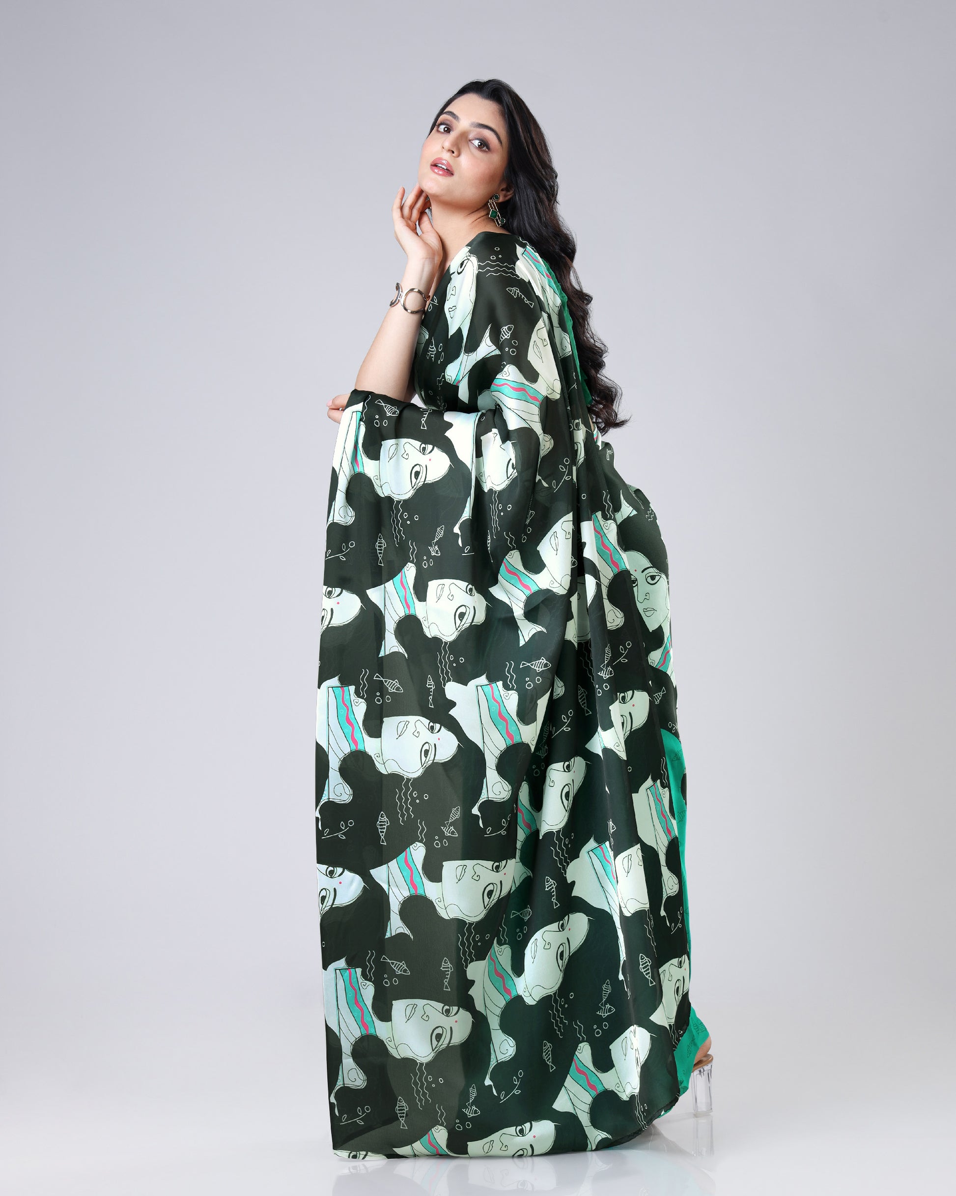 Face Print, Full Hint - Fashion Ka Naya Mint Quirky Saree
