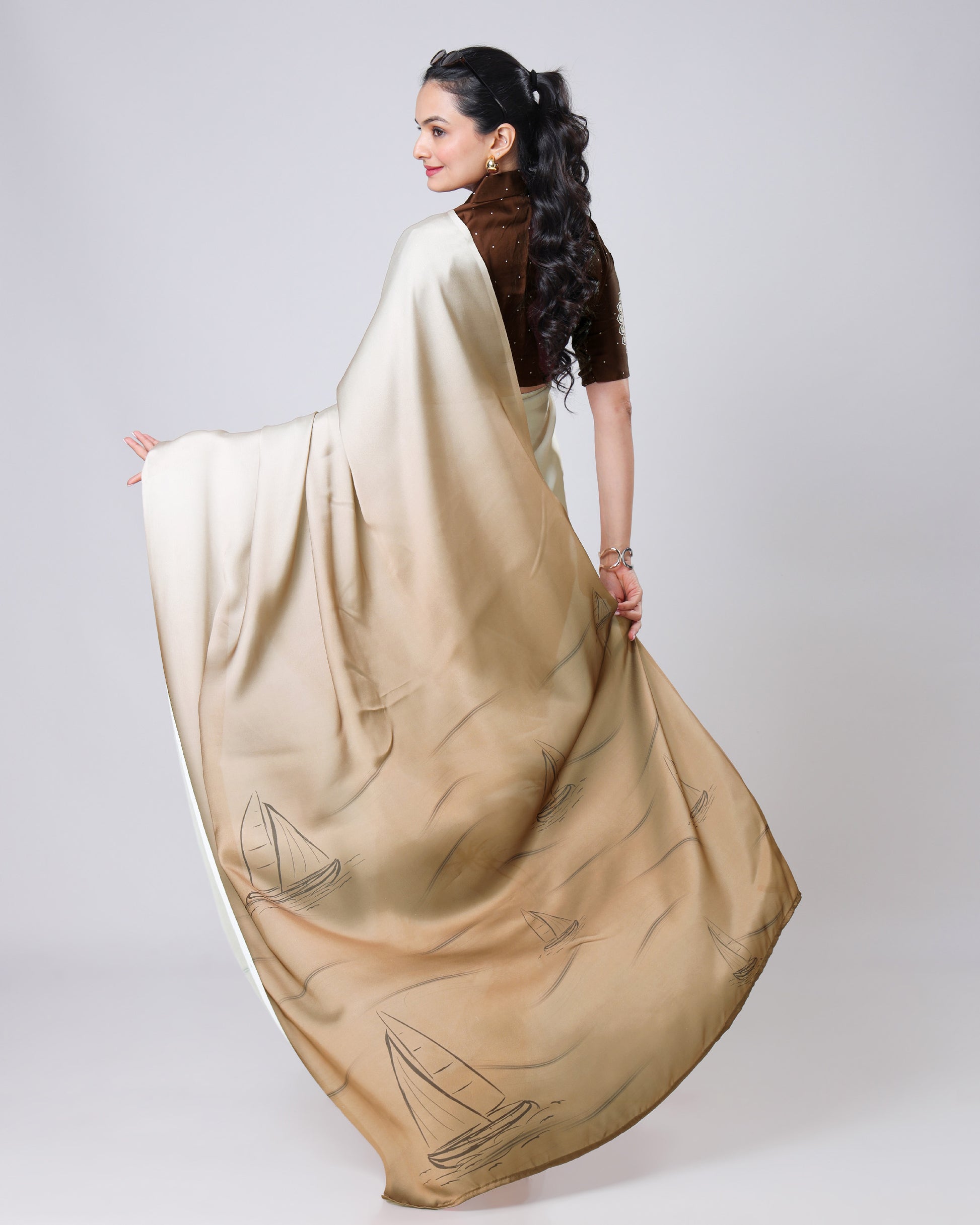 Add a fun twist to your wardrobe with this quirky saree! Designed for those who love to stand out, it features playful prints, bold colors, and a touch of drama. Whether it's a college fest, brunch, or just a day you want to feel fabulous, this saree brings joy and personality to your look.