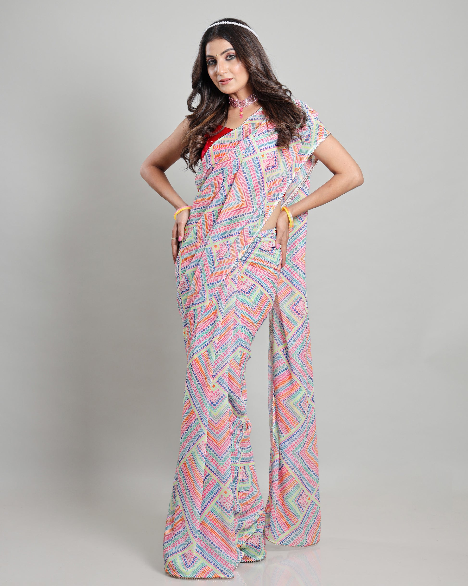 Neon Empowered: A Georgette Saree For The Modern Woman