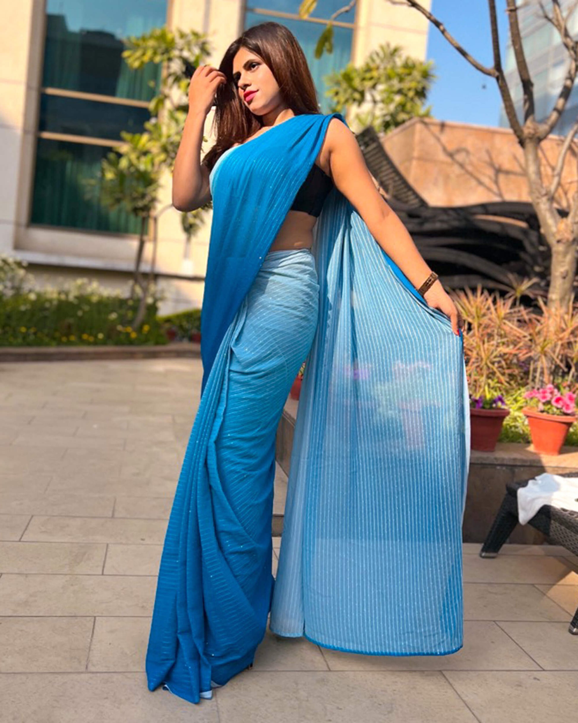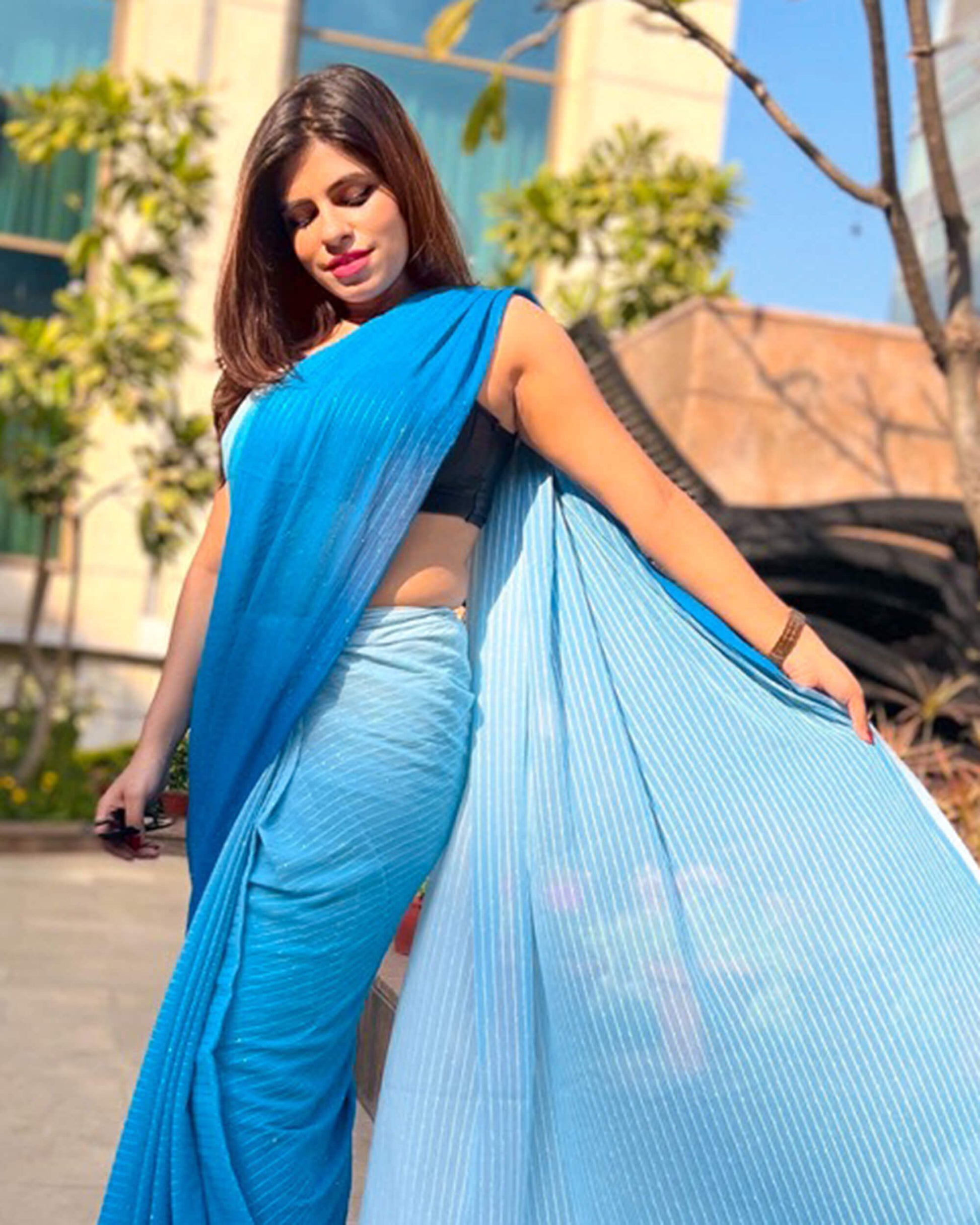 Ocean Blue Ombre Pattern Premium Sequins Georgette Saree
