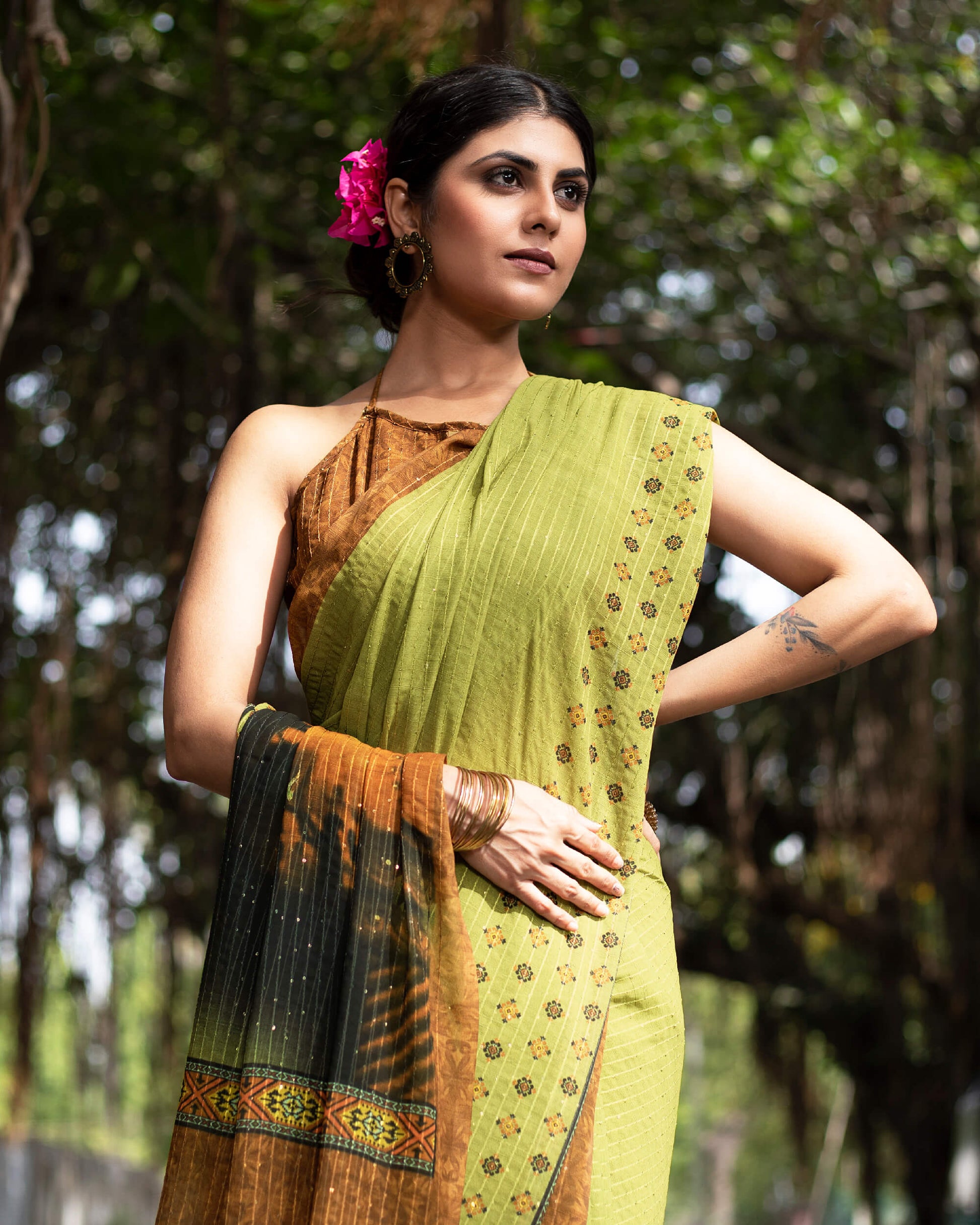 Fabcurate's saree collection will upgrade your dressing style. Highly rated fabrics such as Liquid Organza, Japan satin, Chinon Chiffon, Uppada Silk, Georgette, have been drawn into gorgeous sarees. Wear a class and be a trend maker, with these new sets of sarees. These fabrics are durable, have good drapability, soft when touching such as silk.