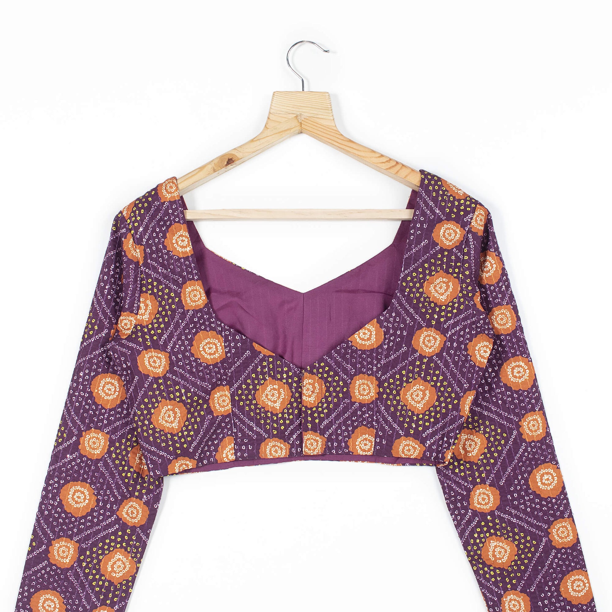 Raisin Purple And Yellow Bandhanii Pattern Digital Print Georgette Saree