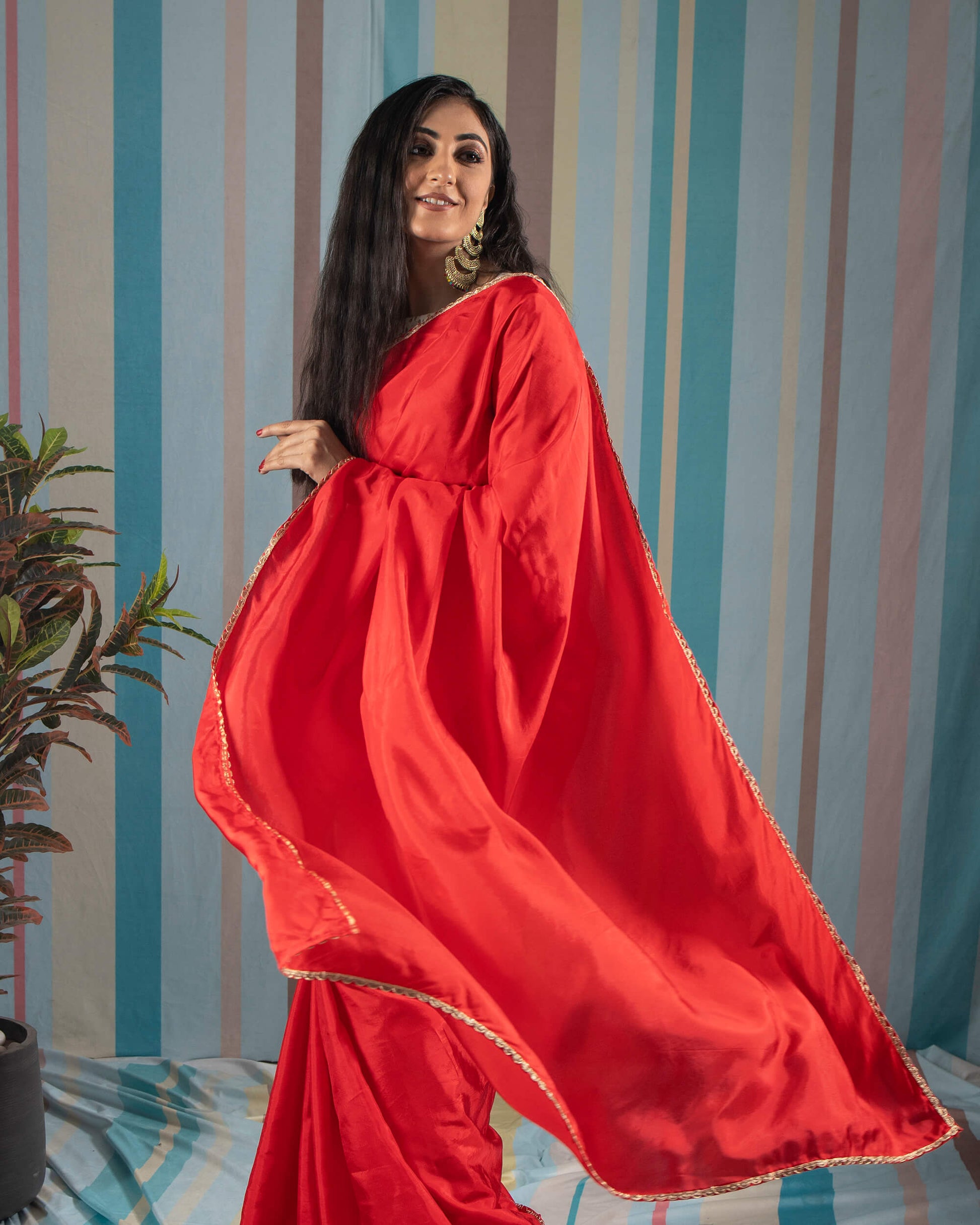 Red Plain Viscose Uppada Silk Saree With Lace Border