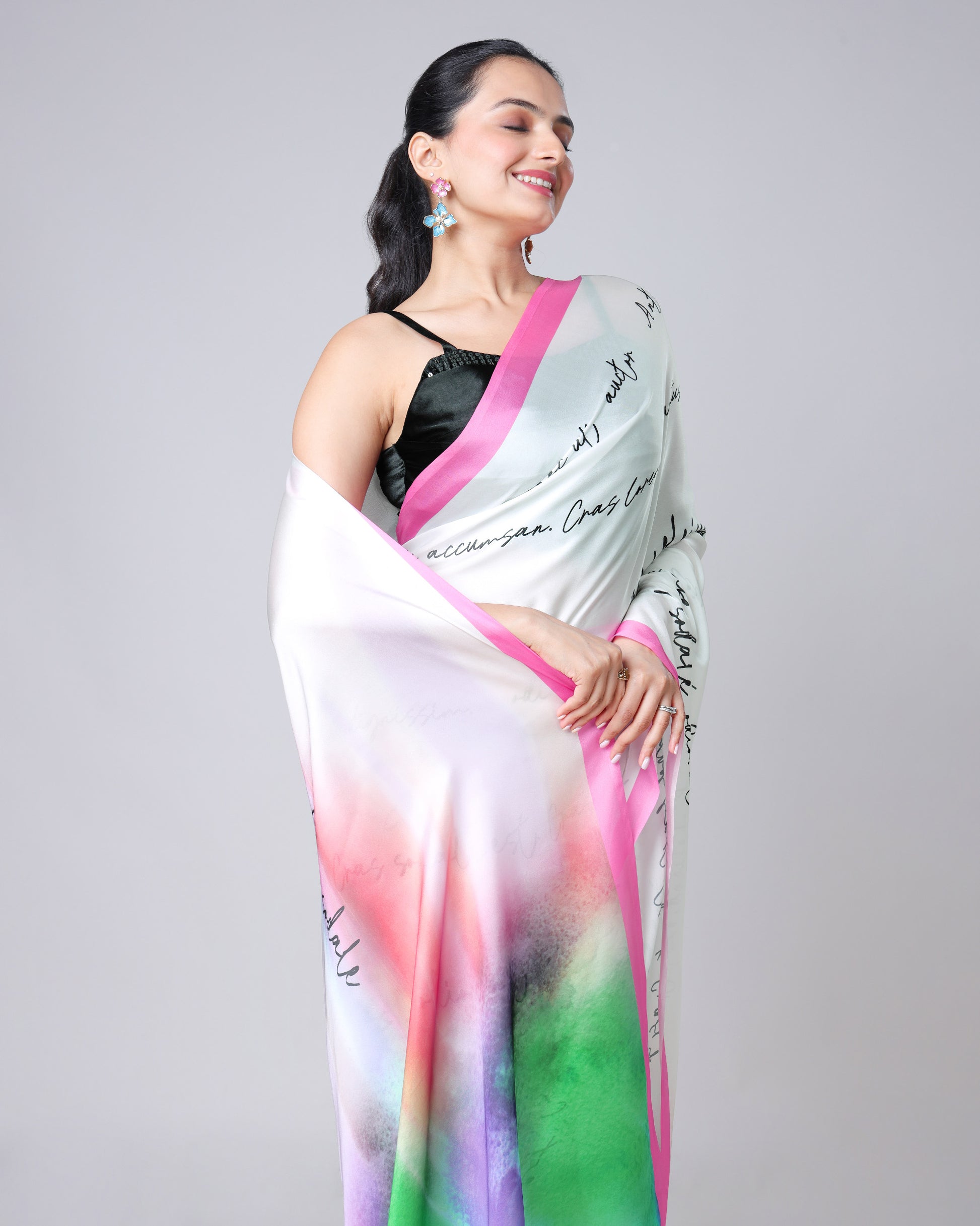 Add a fun twist to your wardrobe with this quirky saree! Designed for those who love to stand out, it features playful prints, bold colors, and a touch of drama. Whether it's a college fest, brunch, or just a day you want to feel fabulous, this saree brings joy and personality to your look.