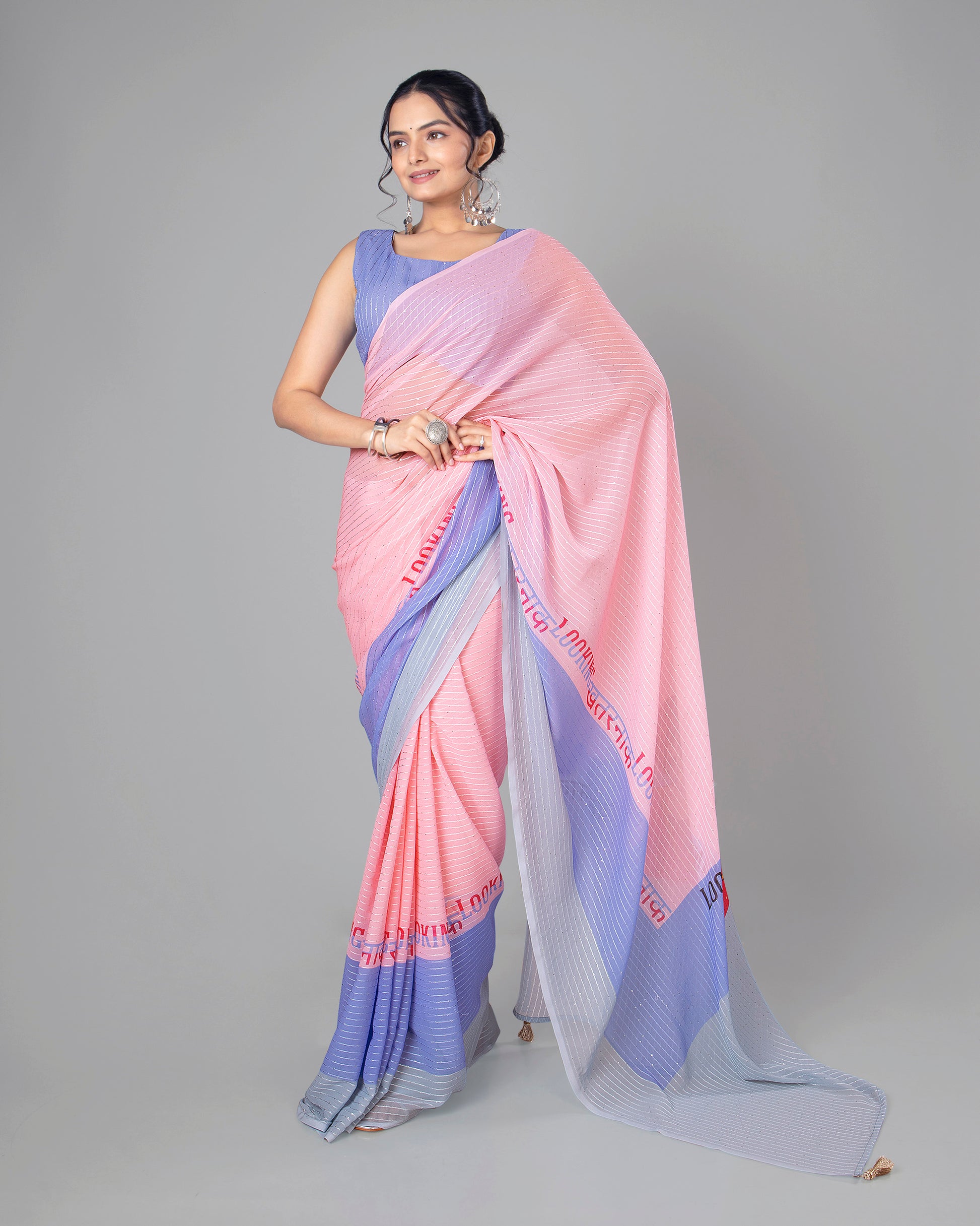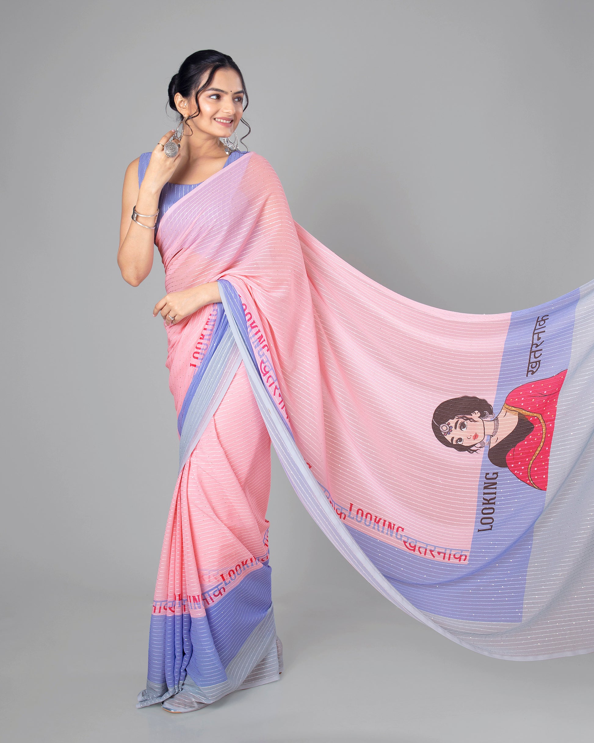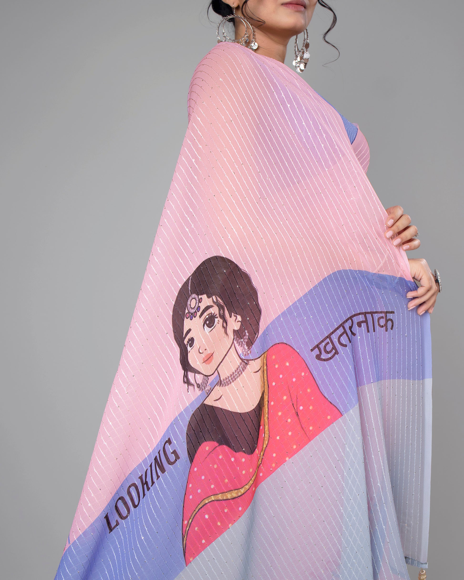 Up your style game with this exclusive designer saree! Made of gorgeous embroidery and featuring a stunning quirky design, you'll be ready to make a statement everywhere you go. Get ready to wow the crowd in this Bollywood-approved look!